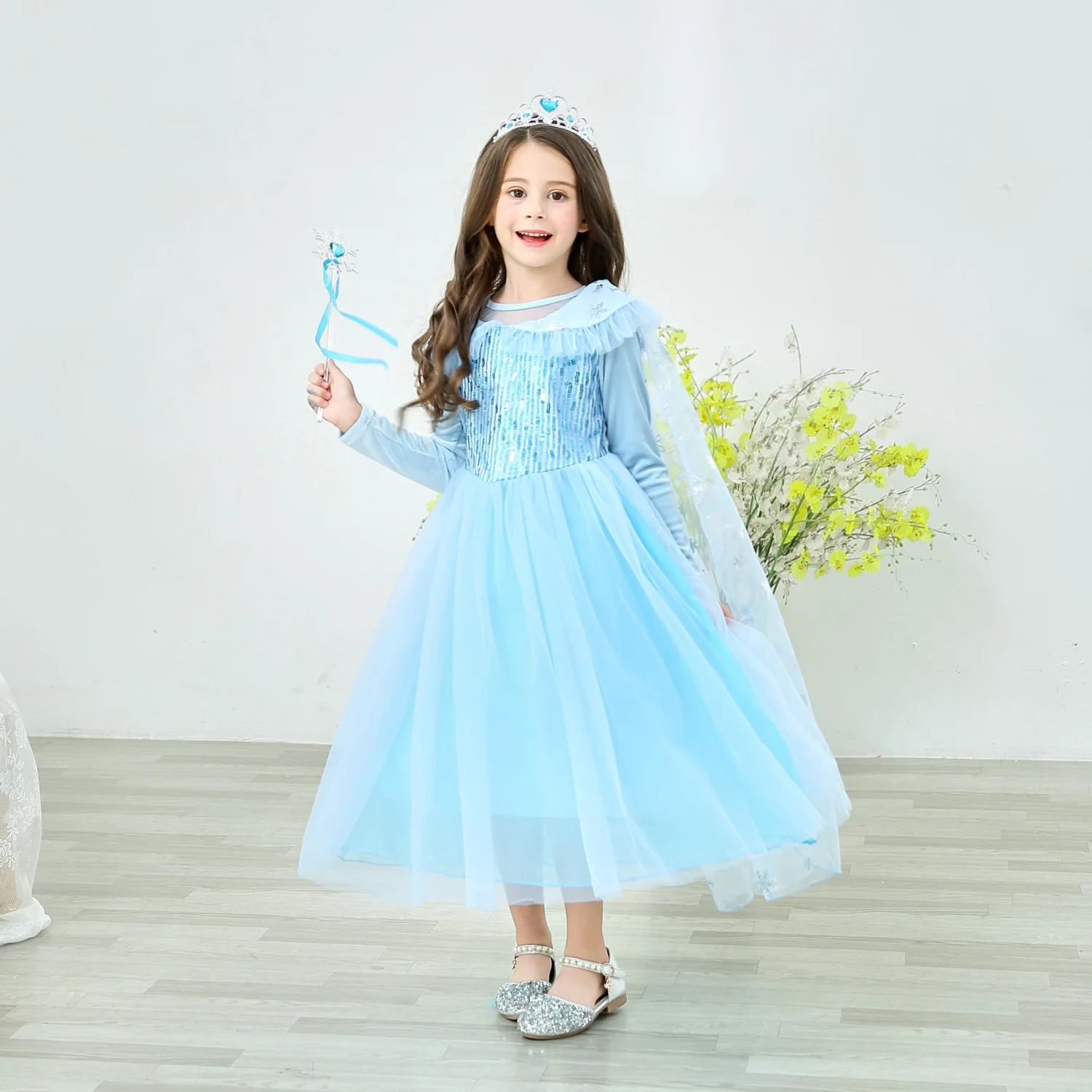 Платье Эльзы для девочек, детская одежда, костюм принцессы с блестк...