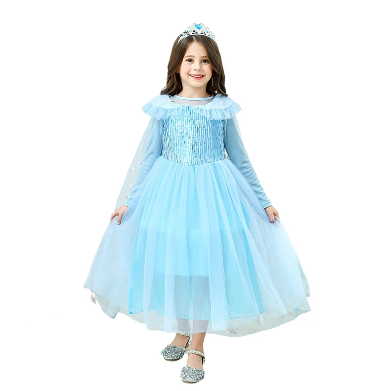 Платье принцессы для девочек на Хэллоуин, карнавал, маскарадный костюм Эльзы, детское рождественское праздничное платье, детский маскировочный костюм с блестками, От 3 до 10 лет