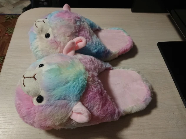 Мягкие тапочки с альпакой, милые плюшевые тапочки с радужной ламой,...