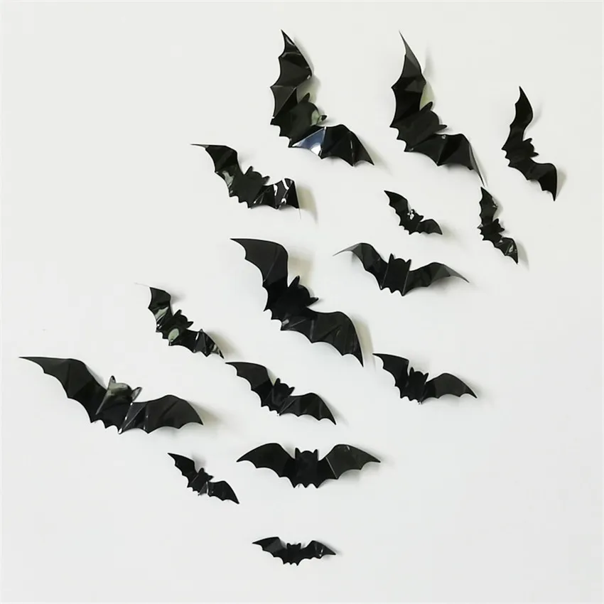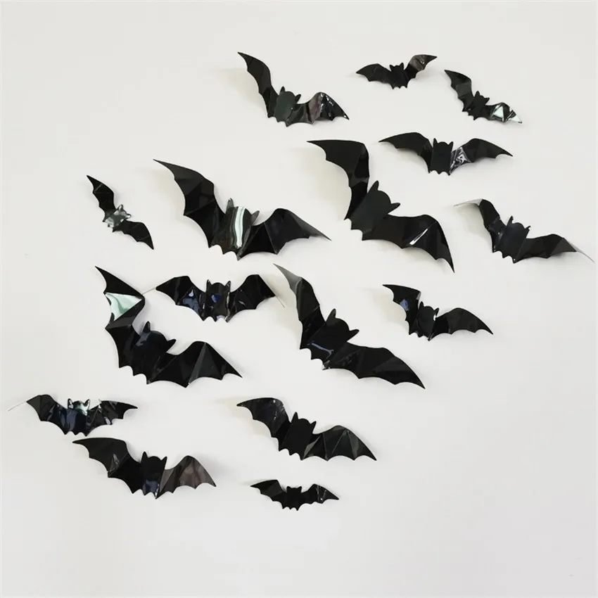 12 шт. украшение на Хэллоуин 3D черная ПВХ летучая мышь для вечерни...