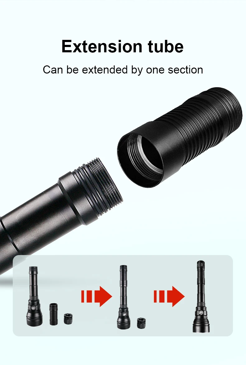 Самый мощный фонарь для дайвинга Новый XHP160, с использованием батарей 3*18650 или 3*26650, Уровень водонепроницаемости до IPX 8, освещение на сверхдальних расстояниях 800 метров, обеспечивает сверхъяркий белый свет ночью и во время дайвинга. Срок службы> 100,X00 часов.