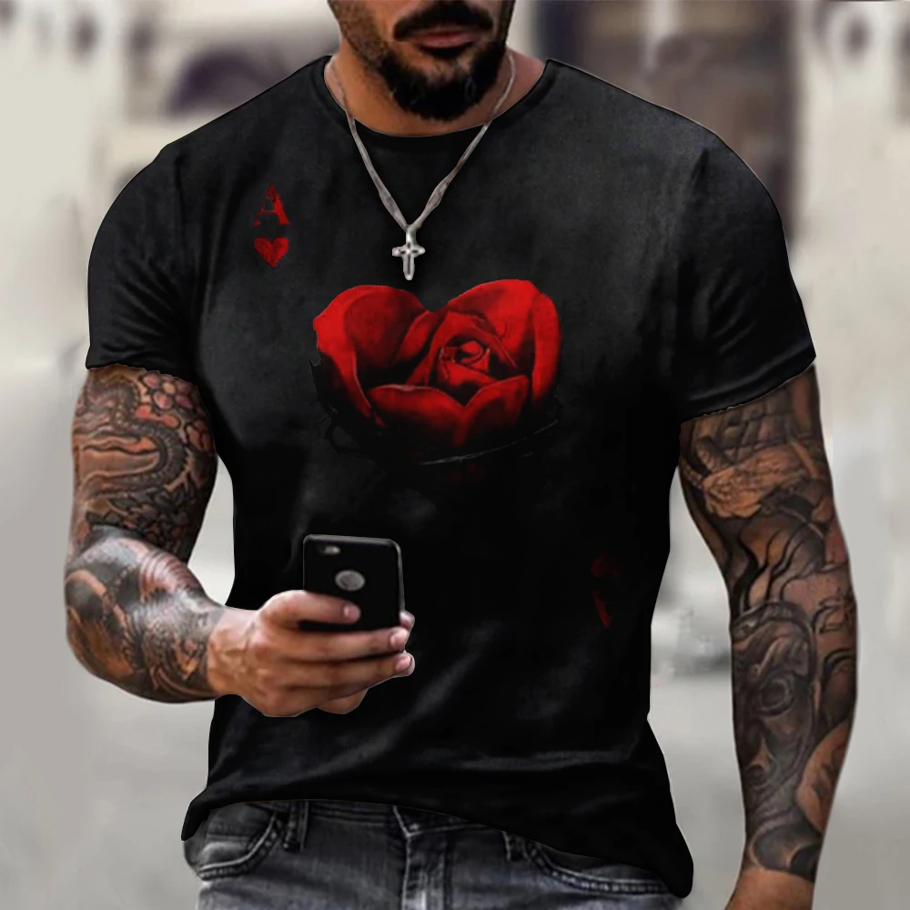 Мужская футболка с 3d принтом, летняя дышащая Спортивная футболка с принтом розы для фитнеса