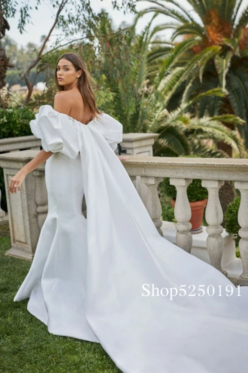 Атласное свадебное платье с открытыми плечами, со съемным шлейфом