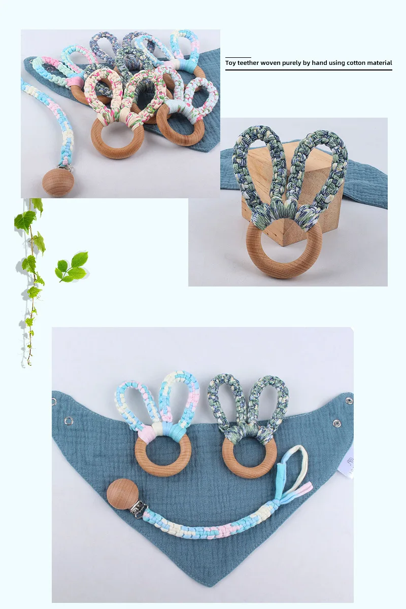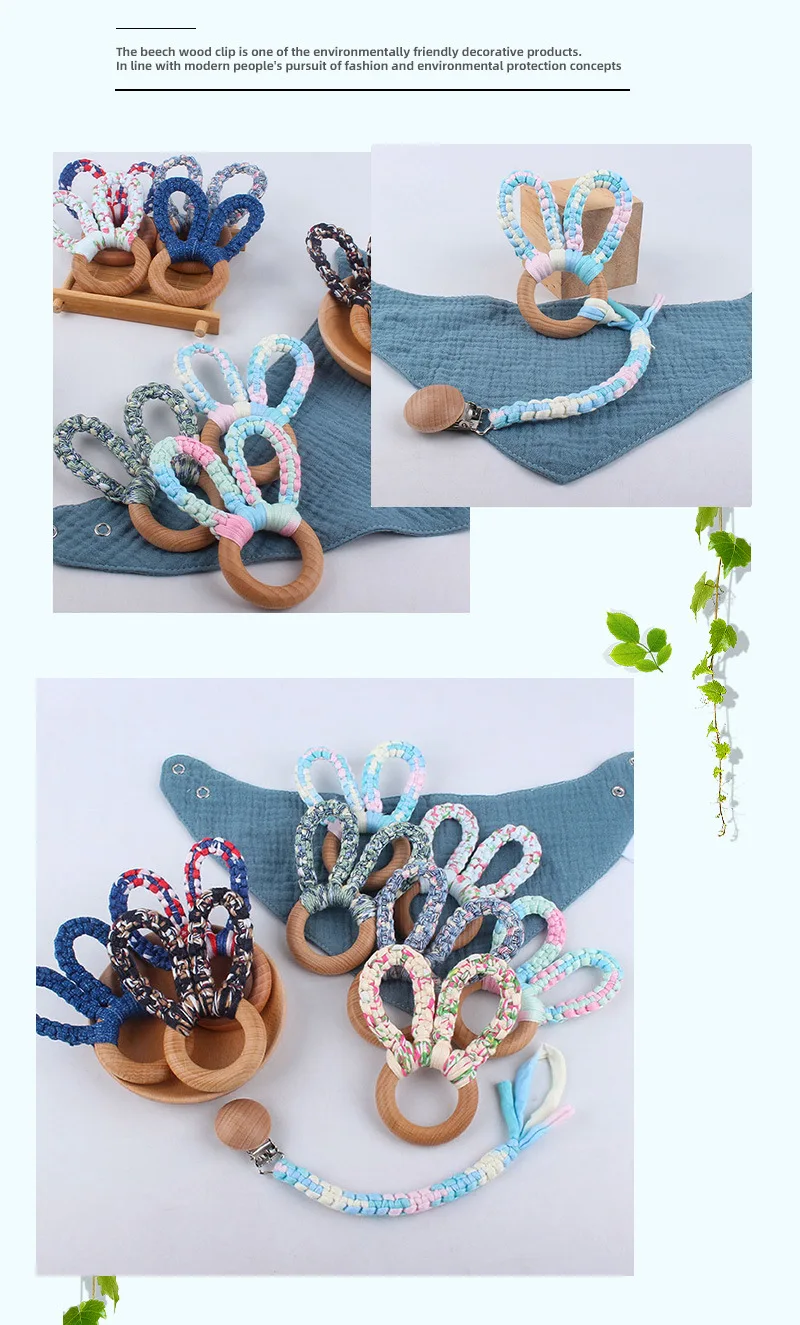 Coskiss, 1 шт., детская деревянная цепочка с зажимом для соски, хлопковые Зажимы Ручной работы, держатель с поводком, ремень, вязаный Прорезыватель с ушками кролика