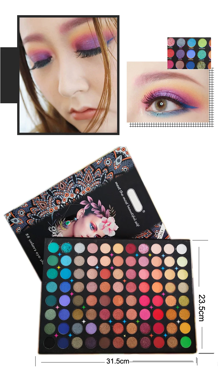 ✦ Супер пигментированный, мягкий и гладкийОчень кремовый, бархатистый, мягкий и гладкий, легко слоивается и смешивается.✦ Стойкий цветОставайтесь на весь день. Сильно пигментированные и долговечные цвета, сохраняют ваш идеальный макияж теней для век в течение длительного времени.88 88 оттенков с поп-цветамиСоздайте бесконечный вид с 88 поп-цветами, крутым и потрясающим. Подходит для различных случаев, таких как повседневные, салонные, вечерние, Свадебные. Здоровые и безопасные ингредиенты и отличное качество. Можно наносить сверху на губы, лицо, ноги и тело.MATTE матовых и мерцающих цветовКак матовые тени, так и мерцающие с кремовой текстурой. Идеально подходит для профессионального макияжа дымчатых глаз, свадебного макияжа, вечерние макияжа или повседневного макияжа.Цвет: 88 цветов s Профессиональная Большая пигментированная палитра теней для векПосылка включает в себя: 1x88 цветов Большая профессиональная палитра теней для век