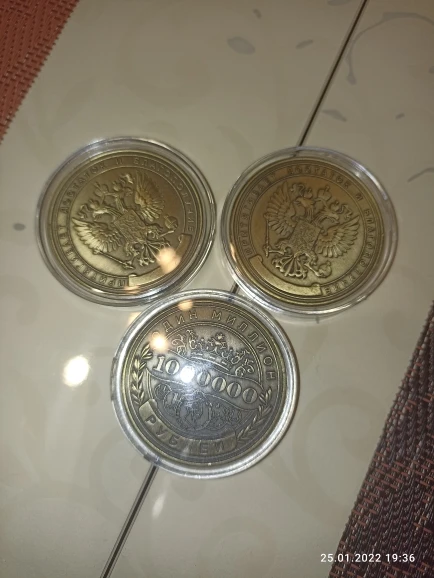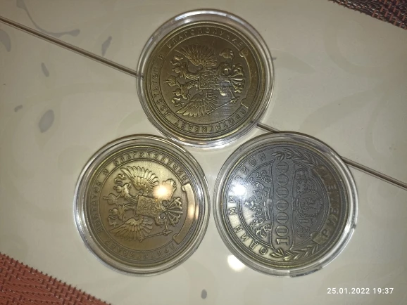 Это копия памятной монеты 1 миллион рублей в России с двойной рельефной поверхностью.