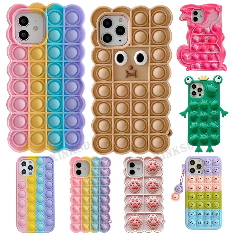 Для iPhone 7 8 Plus X XR XS Bubble чехол для iPhone 12 11 Pro Max Mini SE чехол Reliver стресс Fidget Toys Push Bubble Antistress