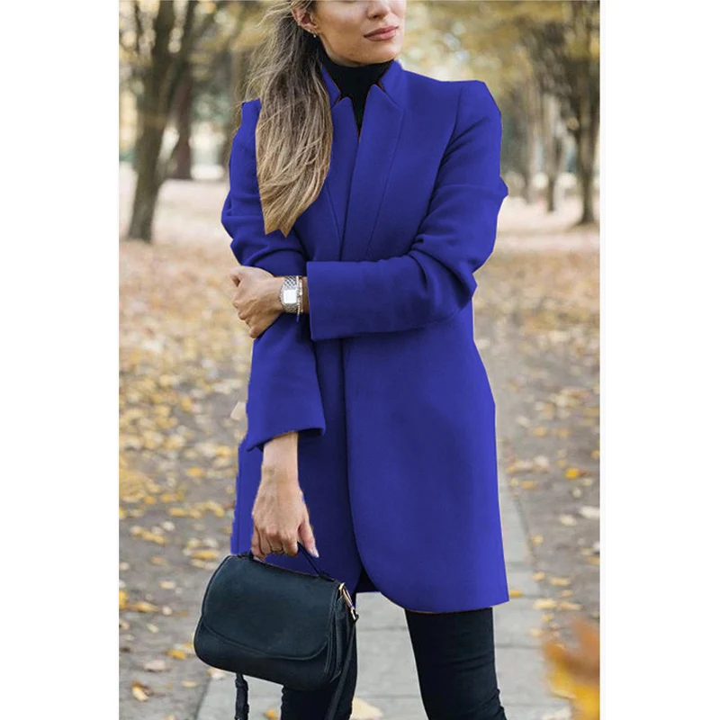 Пальто шерстяное женское однотонное, Осень-зима 2021