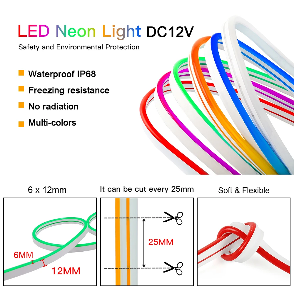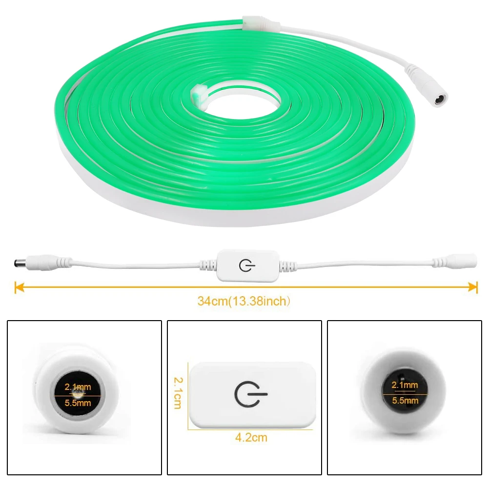 Неоновая вывеска, неоновые огни, сенсорный переключатель, Dimmble, Светодиодная лента, гибкая мягкая трубка, 50 см, 1 м, 2 м, 3 м, 4 м, 5 м, DIY, ночная лампа, 12 В, комплект питания