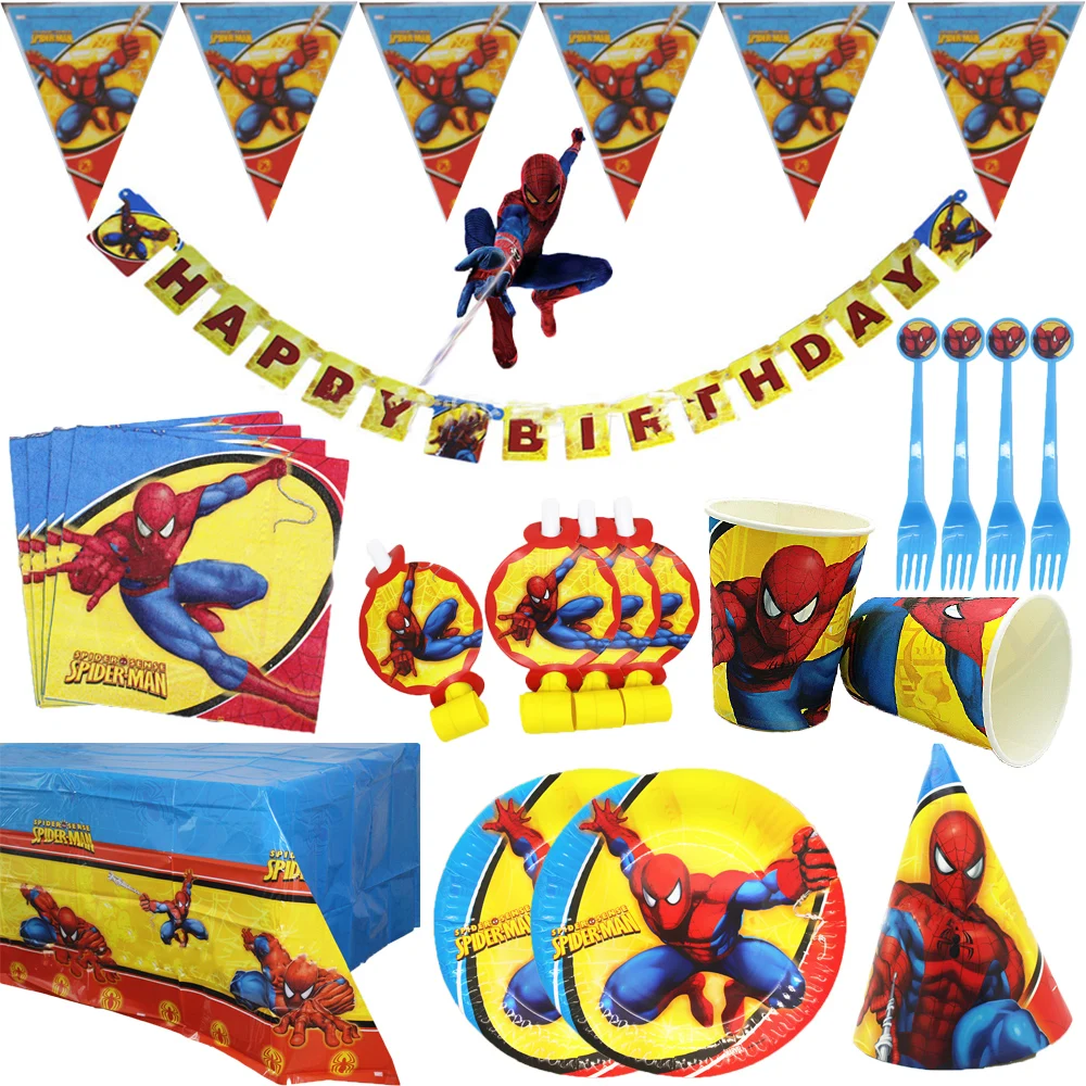 Человек-Паук День рождения декоративная бумага для вечеринок Салфетка под тарелку кружку баннер/флаг конфеты коробка соломенная посуда набор детский душ вечеринка