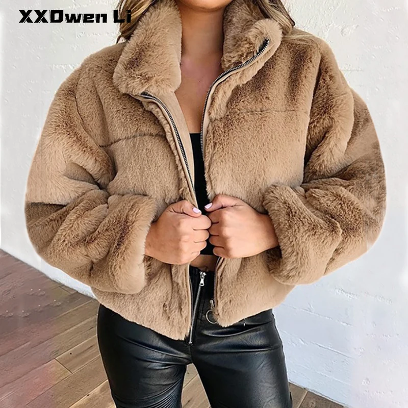 Повседневные теплые мягкие куртки из искусственного меха, элегантны...