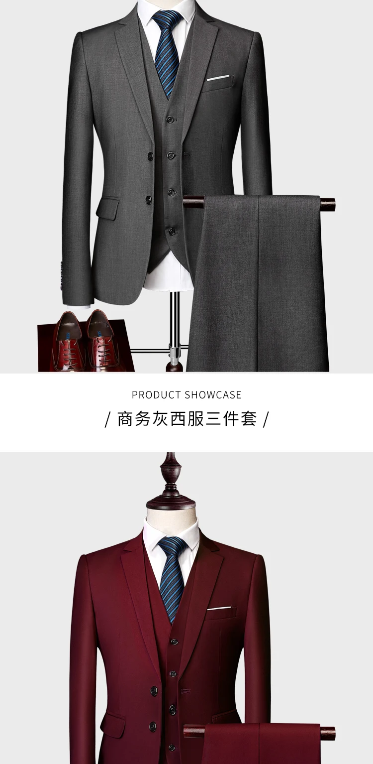 Мужской деловой повседневный костюм, пиджак, брюки, жилет, 2021