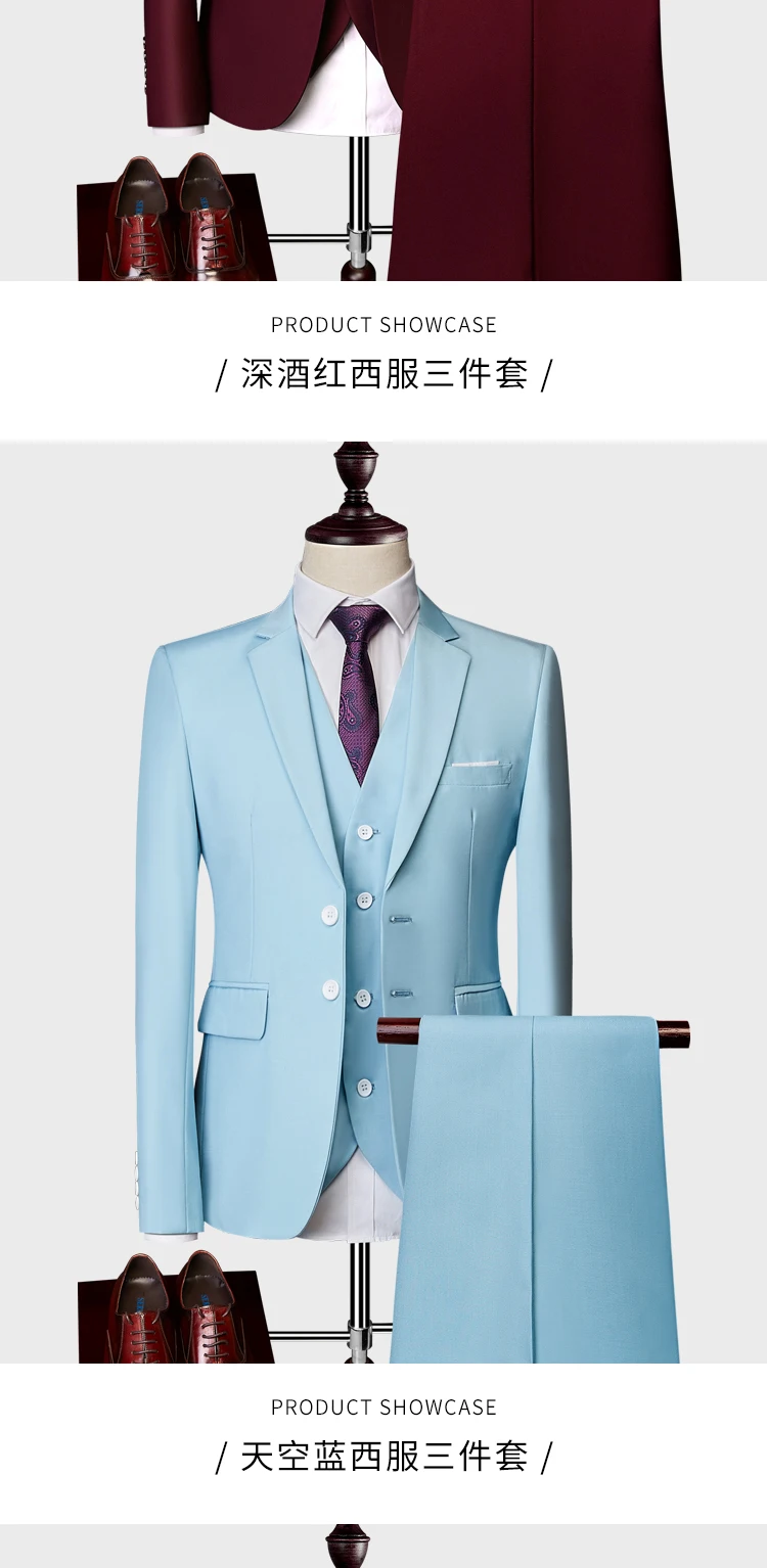 (Пиджак + брюки + жилет) Замечательный мужской костюм для жениха цв...