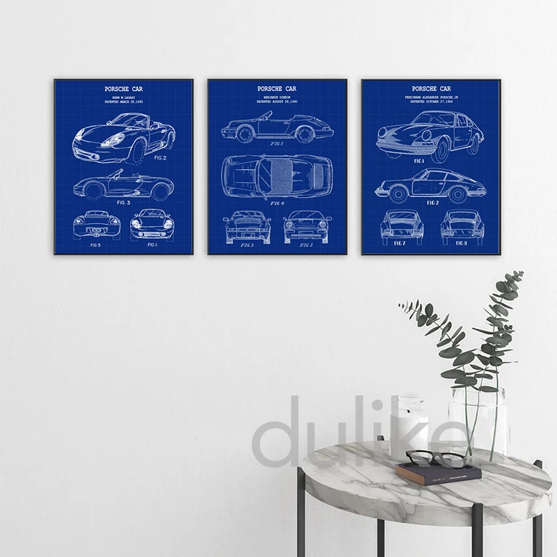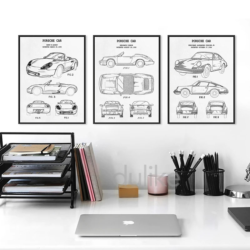 Патент на автомобиль для порсеров, винтажные плакаты и принты, схема спортивного автомобиля, Художественная Картина на холсте, настенные картины, идея для подарка мужчине