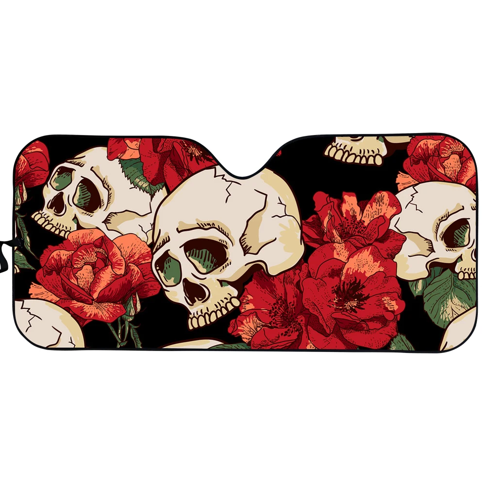 Солнцезащитный козырек для лобового стекла автомобиля, складной, с забавным рисунком черепа и розы, защита от ультрафиолета, 2021