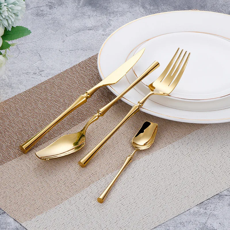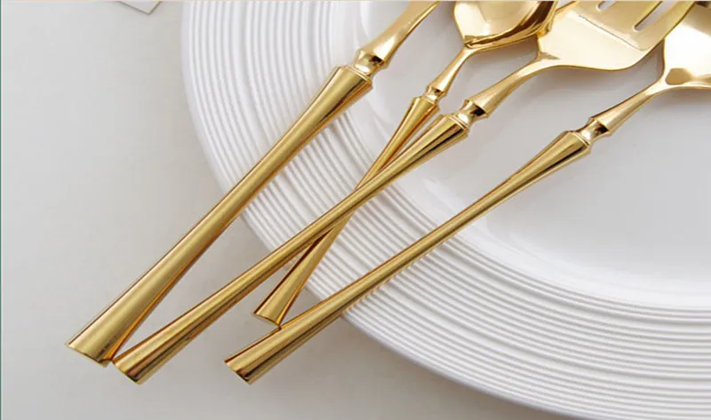 Набор золотых столовых приборов, вилки, ложки, ножи, посуда, стальные столовые приборы, набор посуды из нержавеющей стали, зеркальные Роскошные столовые приборы
