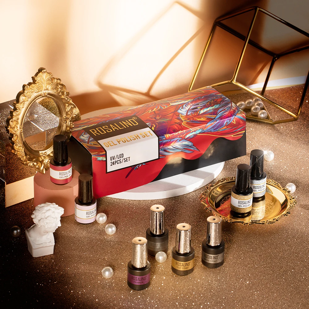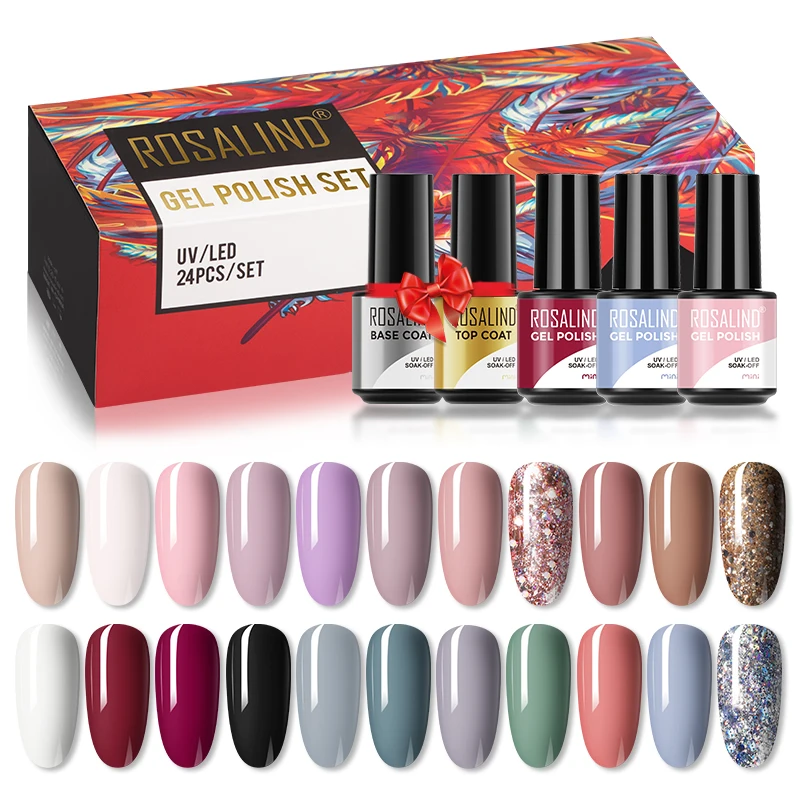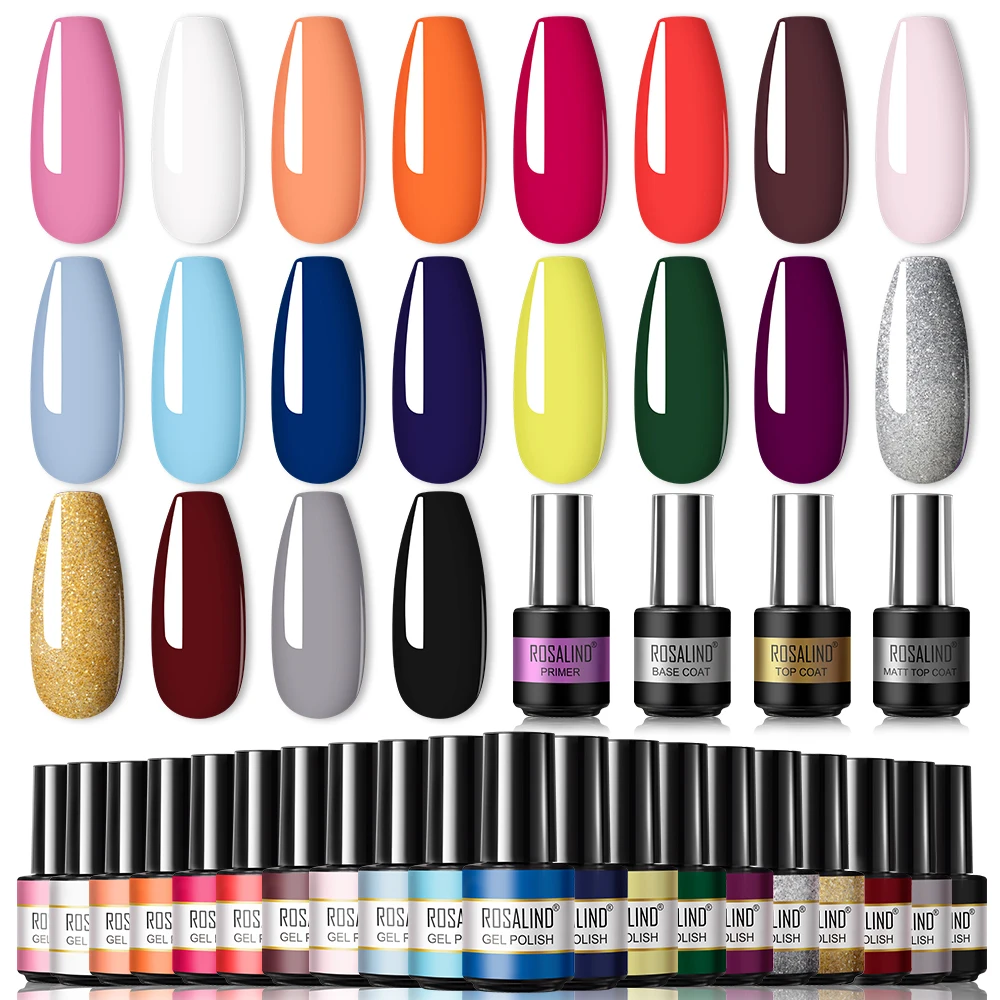 Набор гель-лаков для ногтей ROSALIND, блестящий полуперманентный Гибридный Гель-лак, лак для базового и топового покрытия, набор для дизайна ногтей