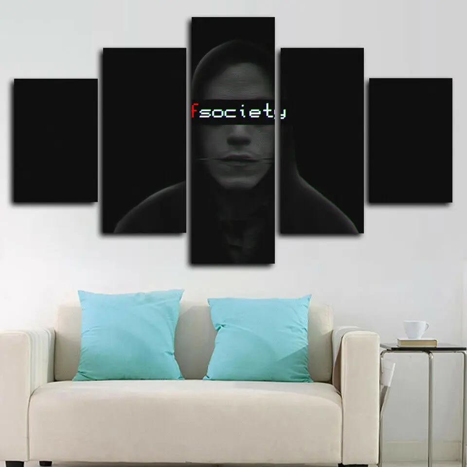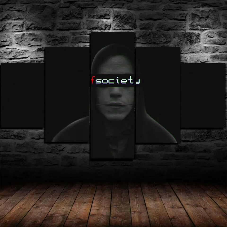 Фотографии Fsociety Mr Robot Poster 5 шт., холст с принтом, настенный художественный декор, HD принт, домашний декор, картины, 5 панелей, гостиная