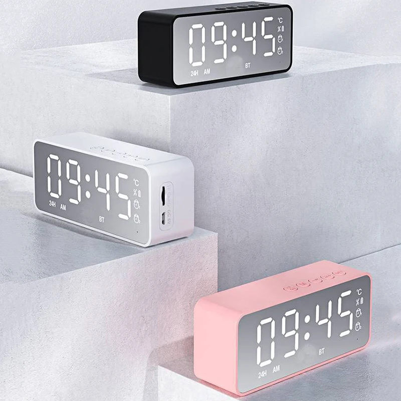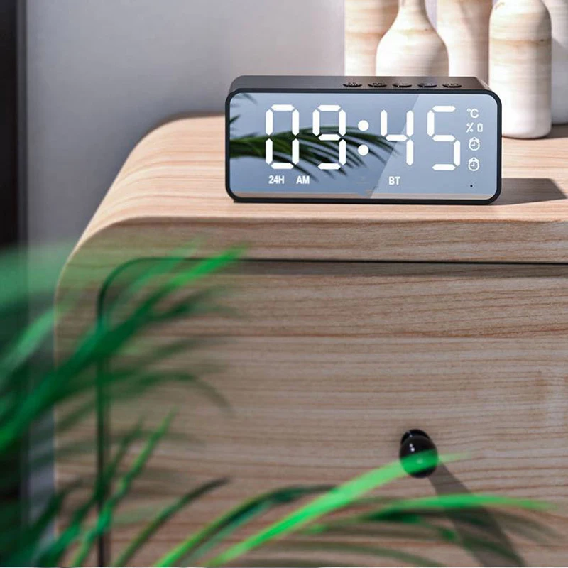 1) Зеркальный bluetooth-совместимый маленький динамик часов: двойные настройки будильника
