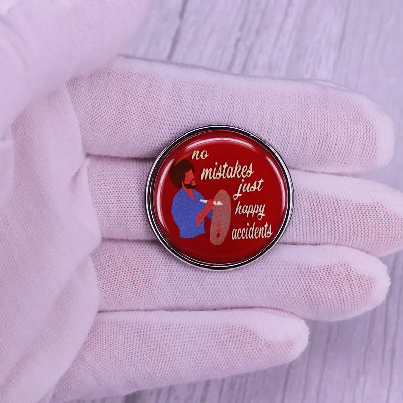 Художественный художник Боб Росс цитаты значок без ошибок просто счастливые несчастные случаи вдохновляющая брошь
