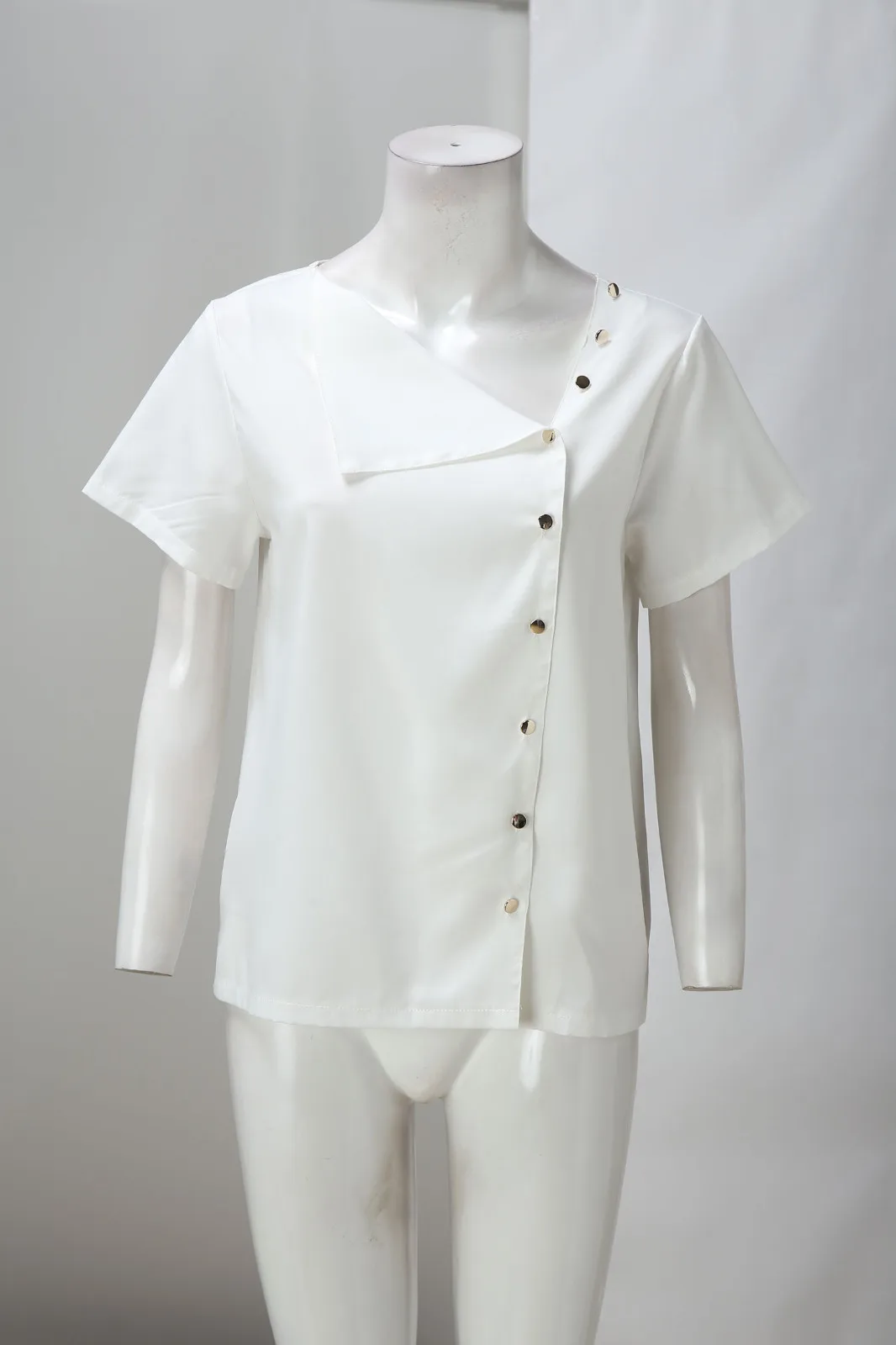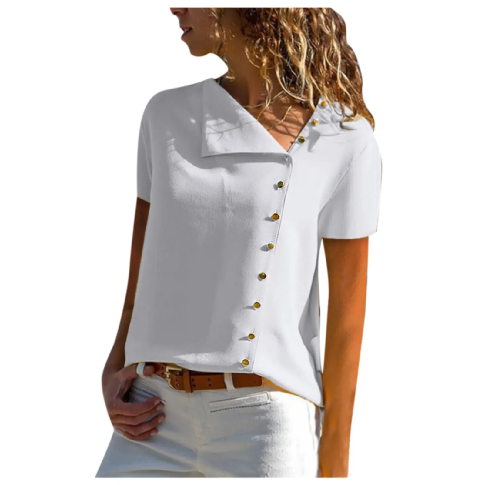 Женская блузка на пуговицах, с коротким рукавом, с V-образным вырезом