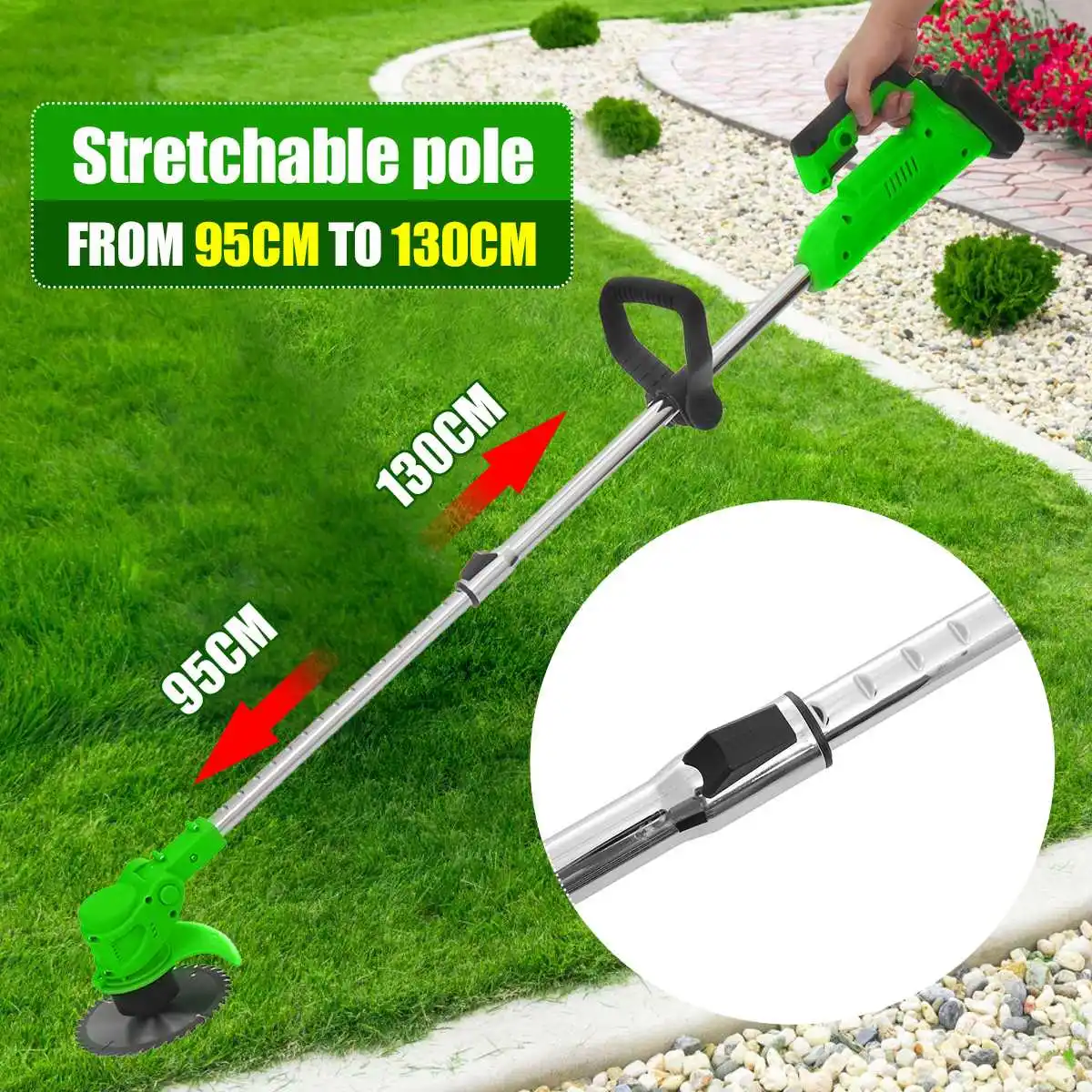 Посылка включает в себя:1 x триммер для травы1 x вспомогательная ручка2 батарейки1 x циркулярная пила1 х стальная проволока3 х гаечный ключ2 x стальное лезвие4 x Пластиковые лезвия1 х адаптер1 x коробкаХарактеристика:● Беспроводной электрический травой тример● Перезаряжаемый● Независимый переключатель безопасности и триггер● Вспомогательная ручка для бесплатной регулировки● Растягивающийся полюс. ОТ 95 см до 130 см● Обновленная съемная защитная крышка для защиты лезвия● Двигатель из чистой меди, мощная Скорость без нагрузки до 25000р/минСпецификация:-Цвет: зеленый, красный (вариант)-Материал: АБС-пластик + алюминий + сталь-Аккумулятор: 21-24 В, 2000-3000 мАч-Время без нагрузки: около 4 часов/6 часов-Время зарядки: 1 час-Скорость без нагрузки: 10000r/min-25000r/мин (макс.)