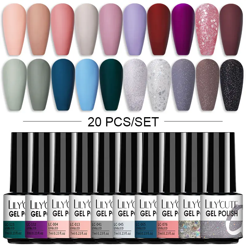 Спецификация:Бренд: LILYCUTEТип: Гель-лакТаблица цветов: как показано на картинкеКоличество: как показано на картинкеОбъем: прибл. 7 млИнгредиент: смолаДлительный период: около 15 дней или болееЭффект: блестящий, Радужный или матовый цвет (следует использовать с LILYCUTE Matte Top Coat) Посылка:20/10 шт 7 мл гель лак для ногтей набор Уникальное предложение:Он изготовлен из здоровых, экологически чистых, не ядовитых, резких химических материалов.Он быстро сохнет с любым УФ-светильник.Длительный срок службы не менее 2-3 недель, фантастические и супер яркие ногти для вас.Этот Гель-лак для ногтей легко наносится и впитывается.Позвольте вам профессиональный или домашний дизайн ногтей.Профессиональный подарок для ногтей для себя или вашей подруги. Профессиональное использование:Шаг 1. Очистите ногти, затем закрепите поверхность ногтей как обычный ноготь.Шаг 2. Полностью встряхните лак, он может сделать польский цвет сбалансированным. (ВАЖНО)Шаг 3. Сначала нанесите базовый гель, который может сделать лак длительным, вылечите УФ-гелевой лампой или светодиодный светильник для ногтей. (Необходимо)Шаг 4. Нанесите первый слой цветного УФ-геля непосредственно, закрепите УФ-лампой в течение 2 минут или вылечите светодиодный светильник в течение 60 секунд.Шаг 5. Нанесите второй слой цветного геля, а затем немедленно закрепите УФ-лампой в течение 2 минут или вылечите светодиодный светильник в течение 60 секунд.Шаг 6. Покрытие без протирания, излечивается УФ-лампой или светодиодный лампой. Удалите наш УФ-гель для ногтей шаг:• Замочите ногти в миске, заполненной небольшим количеством ацетона, или оберните каждый ноготь в ватную подкладку, смоченную ацетоном, примерно на 5-10 минут.• Продукт начнет становиться мягким, и вы можете аккуратно отпилить его или сдвинуть с помощью небольшой деревянной палочки. Теплое напоминание:1. Избегайте контакта с кожей. Если возникают покраснения или другие признаки нежелательной реакции, немедленно прекратите использование.2. Плотно закрываются. Держите подальше от солнечного света. Хранить в недоступном для детей месте. Примечание:Пожалуйста, избегайте контакта с кожей. В чехол несчастных случаев или в том случае, если вы чувствуете себя плохо, немедленно обратитесь к врачу (показать на этикетке в тех случаях, когда это возможно)