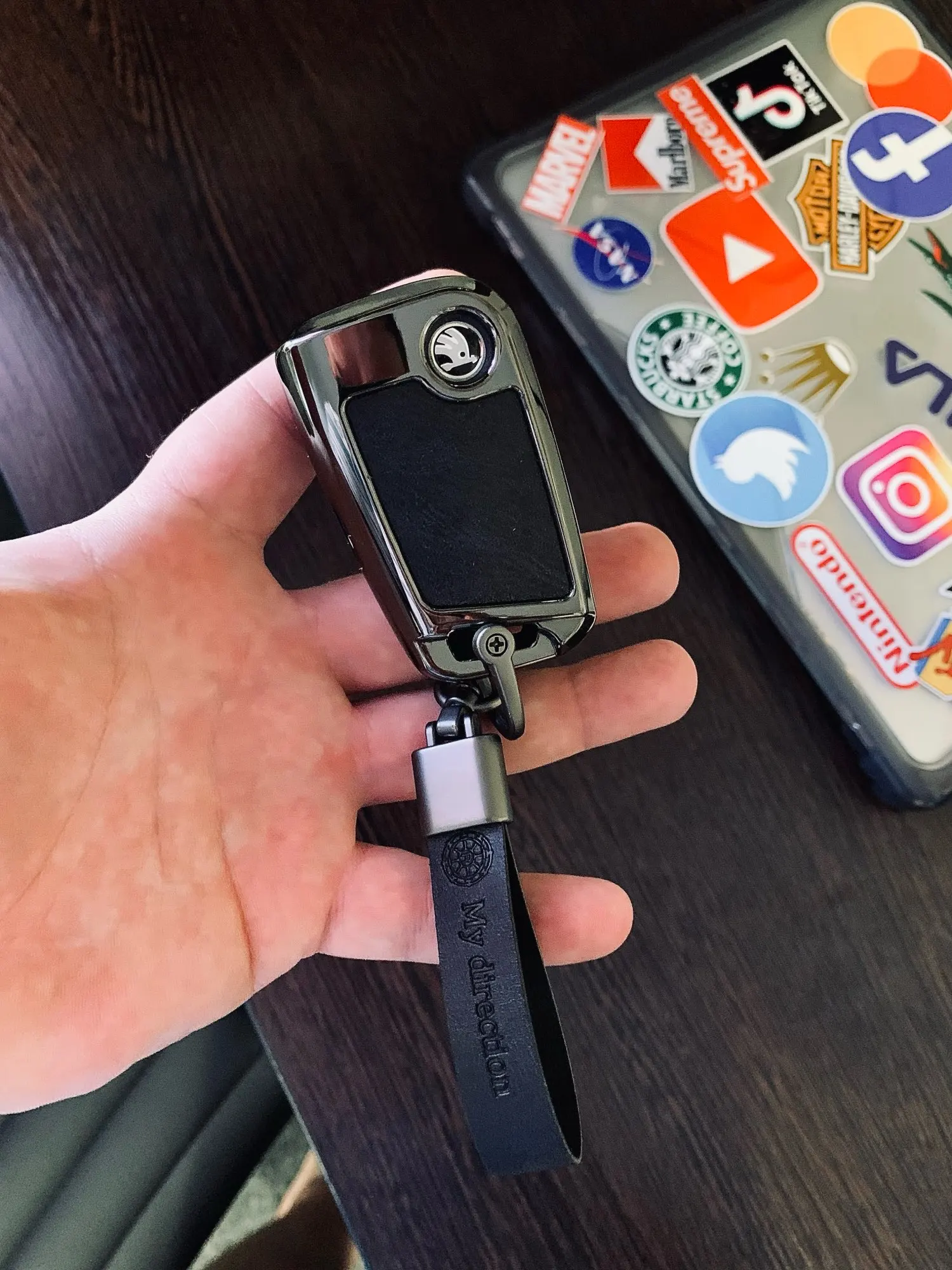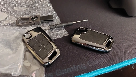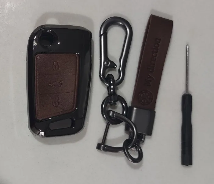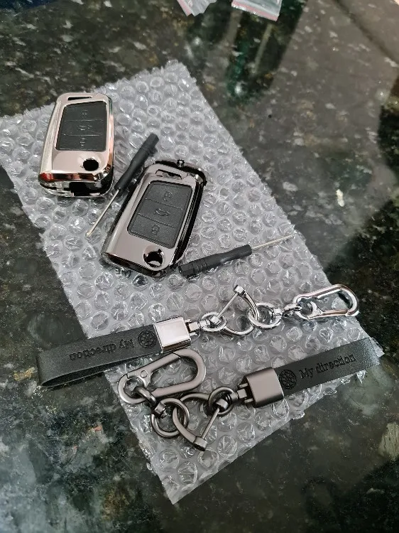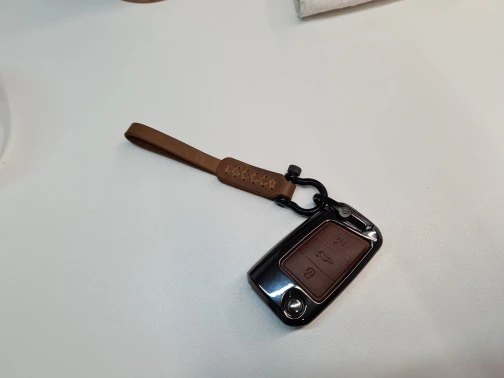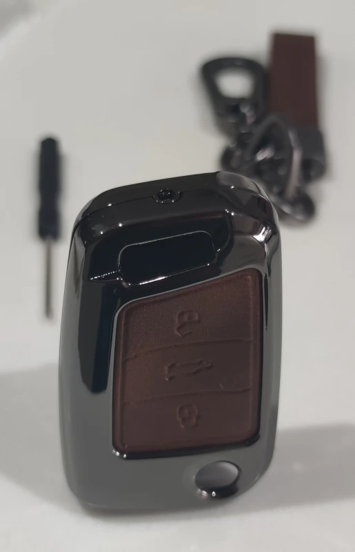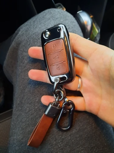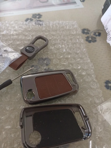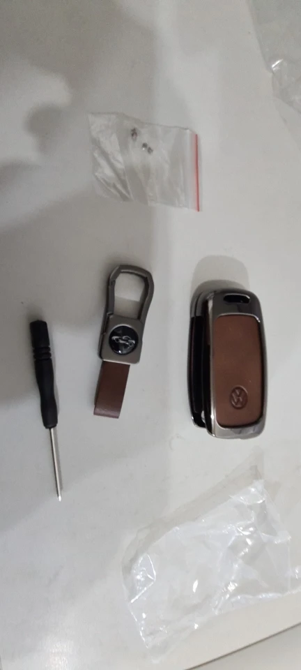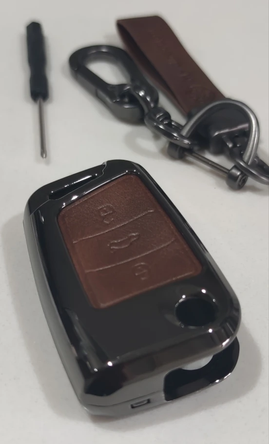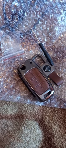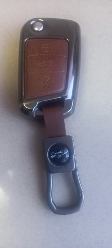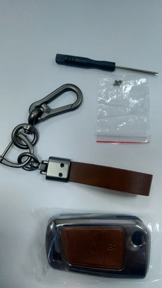 Брелок очень хорошего качества. Корпус изготовлен из металла с кожаной отделкой для кнопок. Он идеально вписывается в ключ и имеет несколько запасных винтов, он также поставляется с небольшим отверткой для сборки, и поэтому вам даже не нужно беспокоиться о том, чтобы найти один. Карабин также сделан из металла и кожи. Он очень хорошо упакован и занимает мало времени, чтобы прибыть. В пределах эталонного запаса. Продукт делает ключ немного больше, но оно того стоит, так как защищает его и остается намного приятнее. I'm going to buy Another Car For Me. Х желательно.