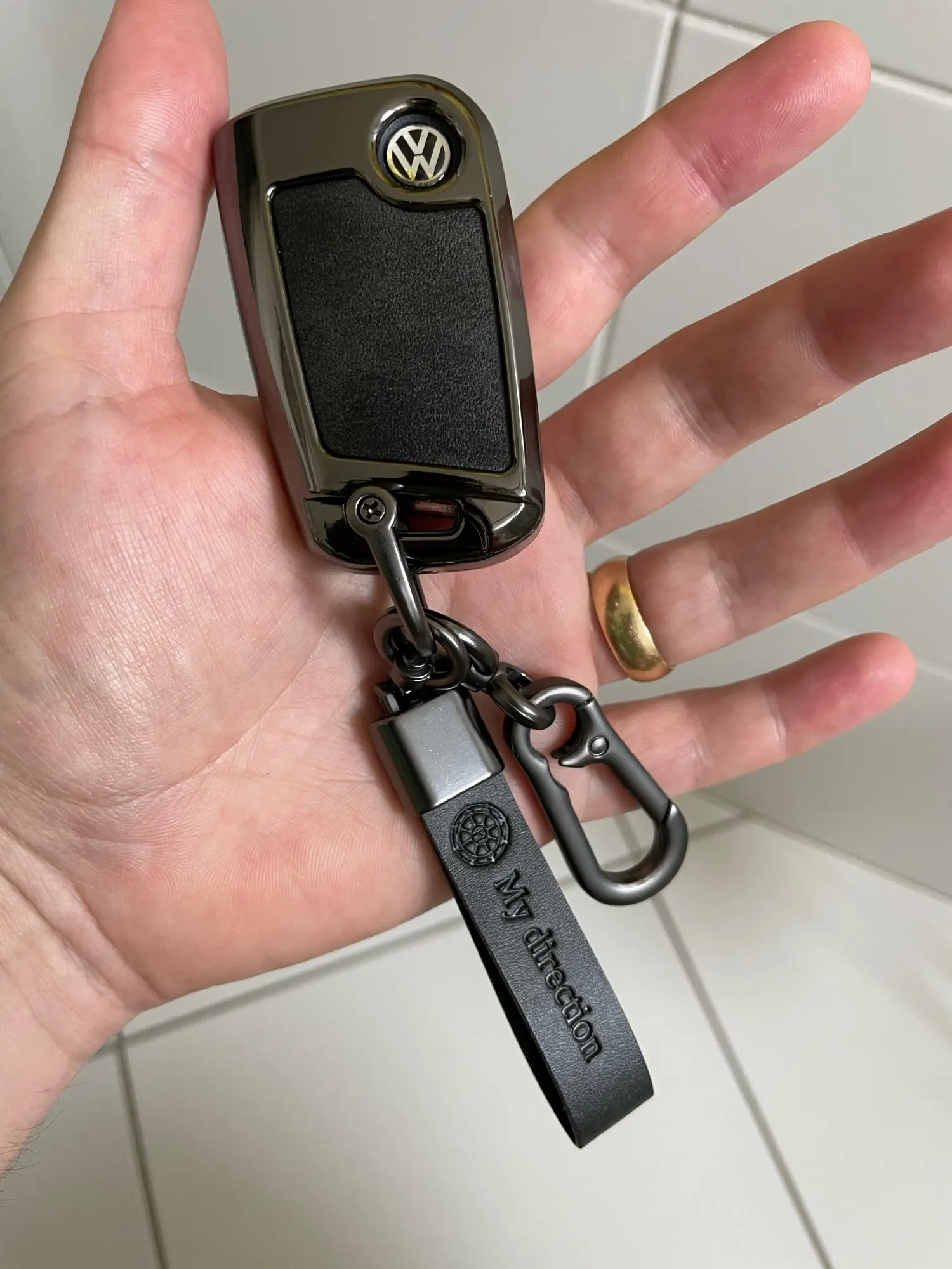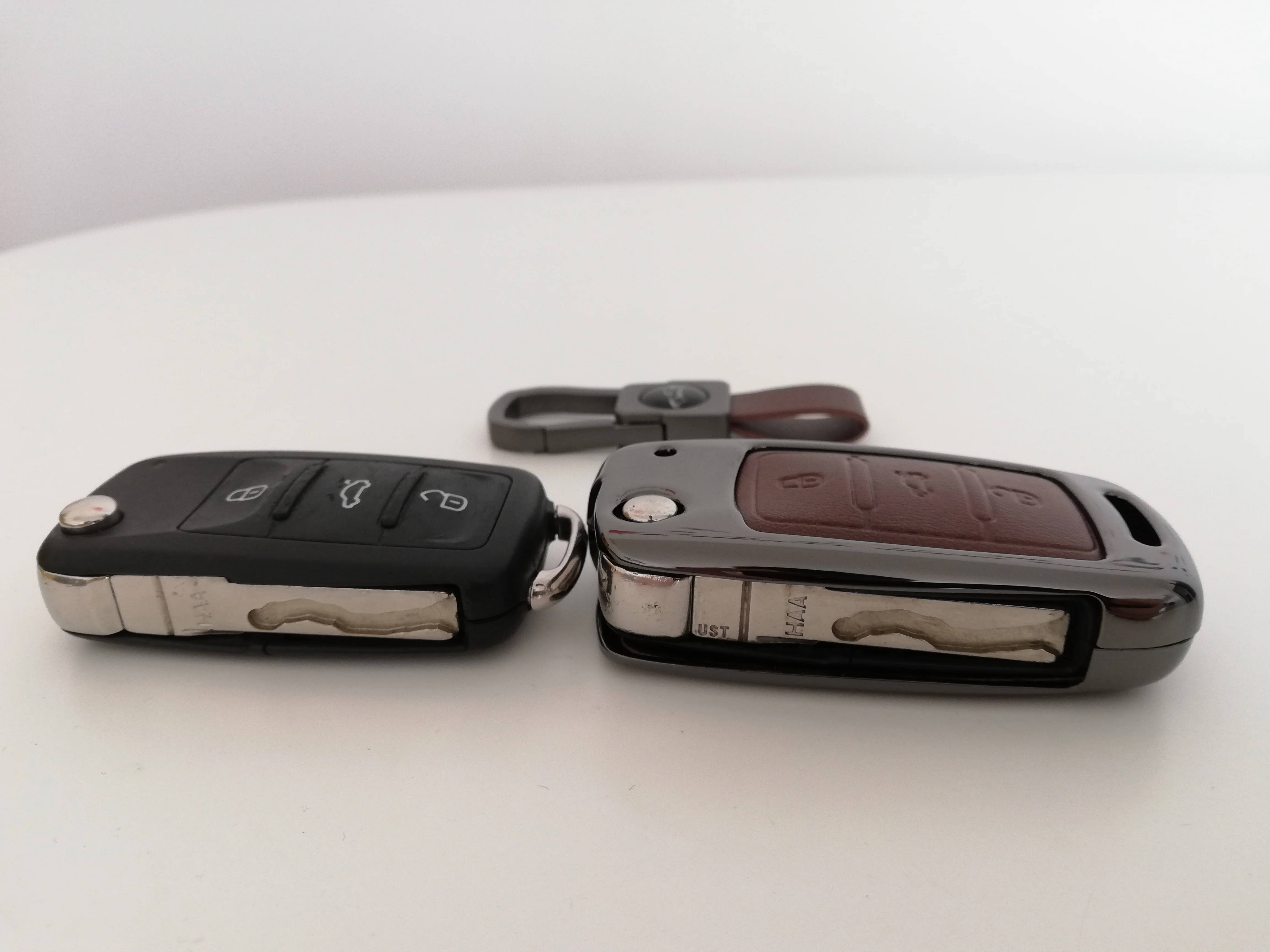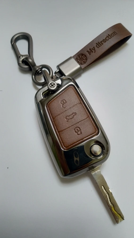 Качество хорошее, но пользоваться не стал, не удобно, с чехлом брелок стал слишком массивный и круглая кнопка, которая выкидывает ключ большим пальцем не нажимается, не удобно в общем. Кстати, имейте ввиду с обратной стороны логотип wv.
