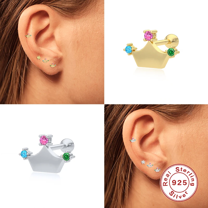 Женские маленькие серьги-гвоздики ROXI, с короной, луной, звездой, молнией, созвездием, 925 пробы, Серебряный пирсинг