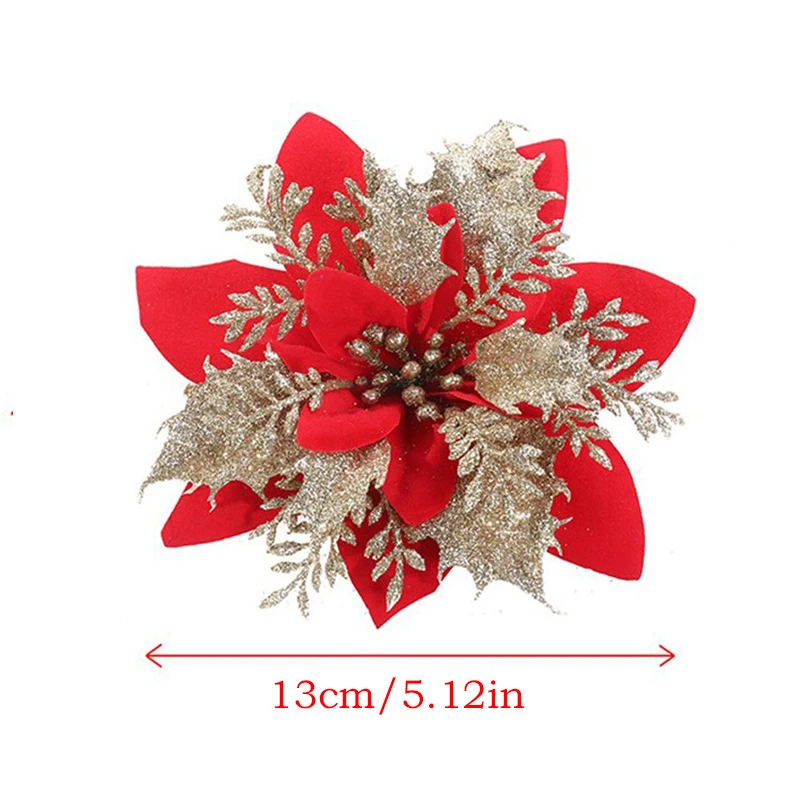 5 шт. искусственные цветы, блестящие цветы, украшения для рождественской елки, украшения для дома, свадьбы, Дня Святого Валентина