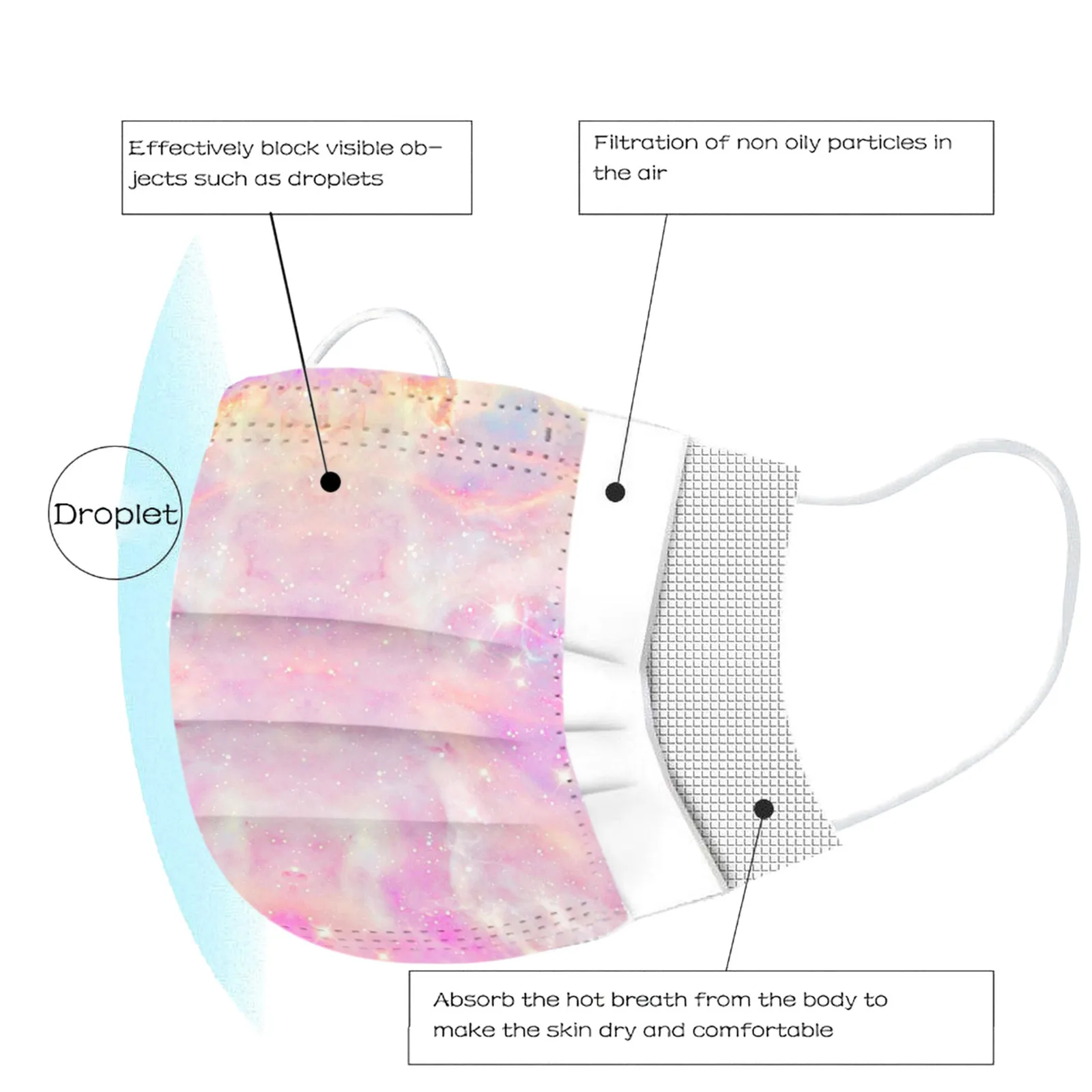 50 шт., одноразовые маски для детей, с градиентом звездного неба