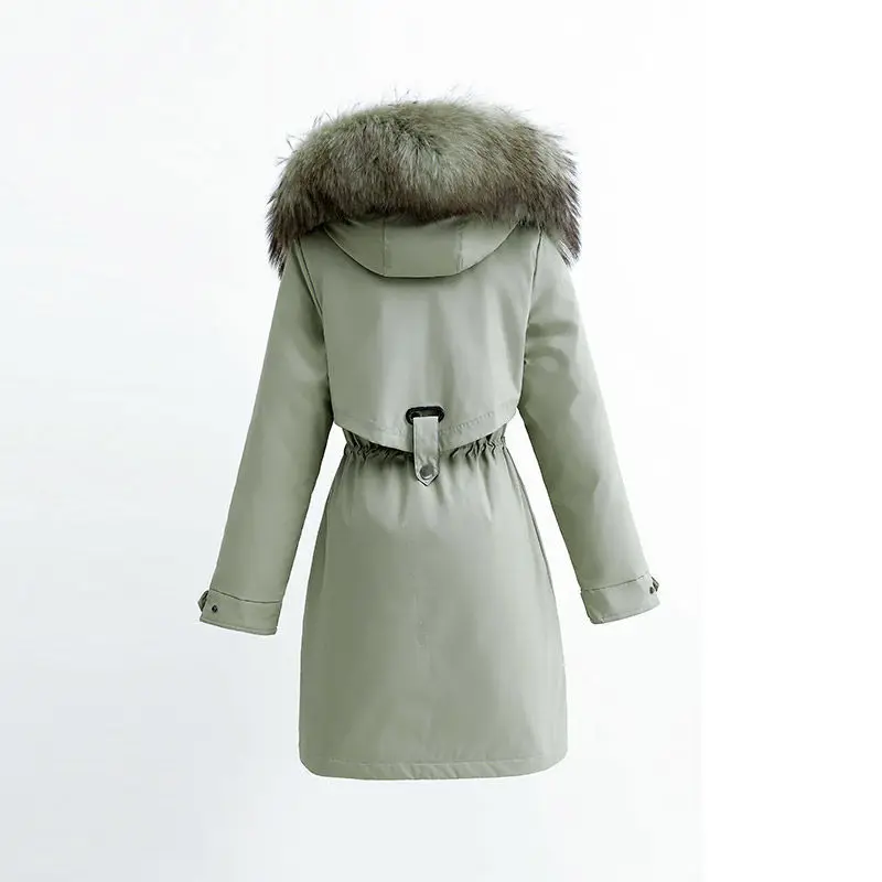 Куртка женская зимняя Длинная с капюшоном и меховым воротником, до-20 градусов, 2021