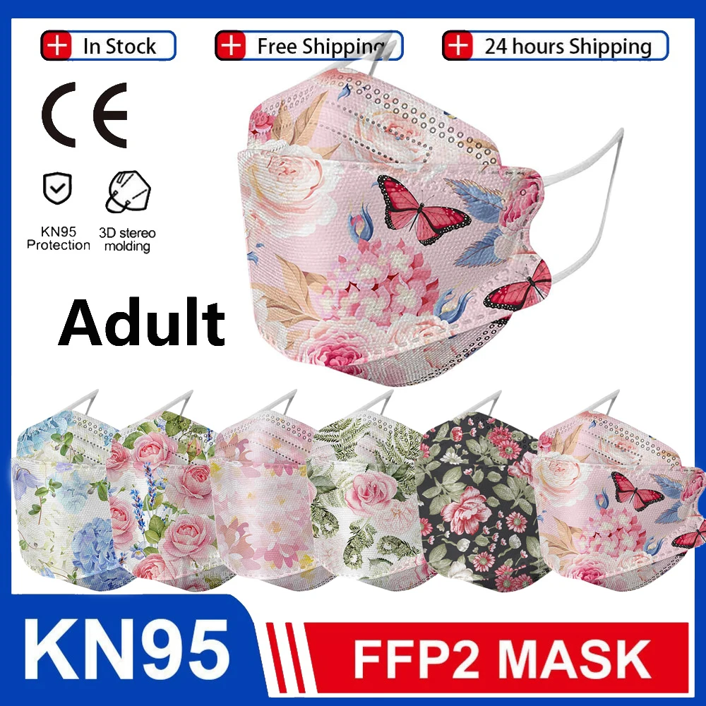 Маска для взрослых CE Ffp2 KN95, многослойная тканевая женская дизайнерская маска KN95 для лица с принтом рыбок и цветов Ffp2, пылезащитные маски