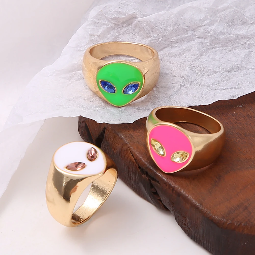 Кольца в стиле панк с геометрическим рисунком инопланетянин золотого цвета кольца в форме головы инопланетянина с кристаллами для женщин модные дизайнерские ювелирные изделия в подарок