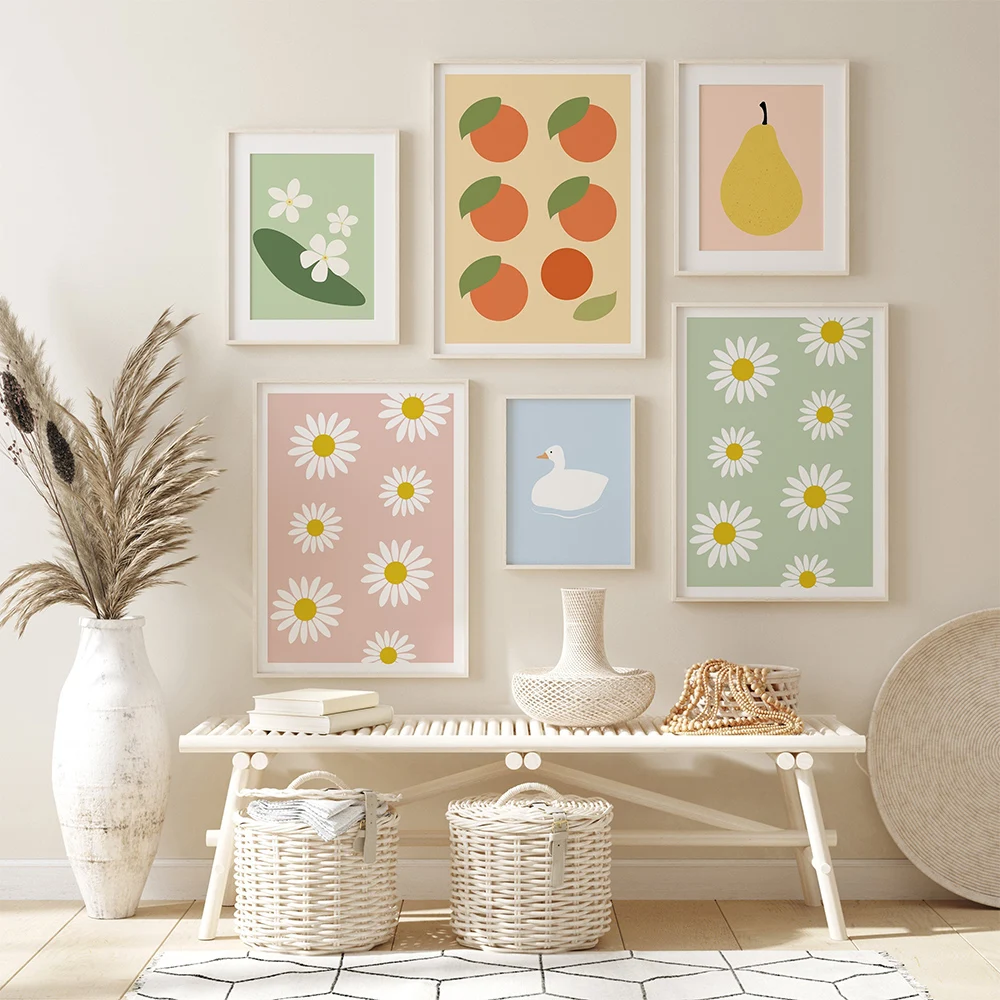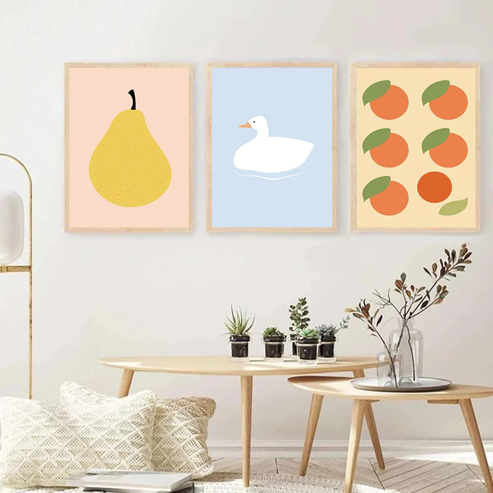 Цветочные постеры в скандинавском стиле, настенные картины с изображением груши, оранжевого Лебедя в скандинавском стиле, декоративное украшение для дома