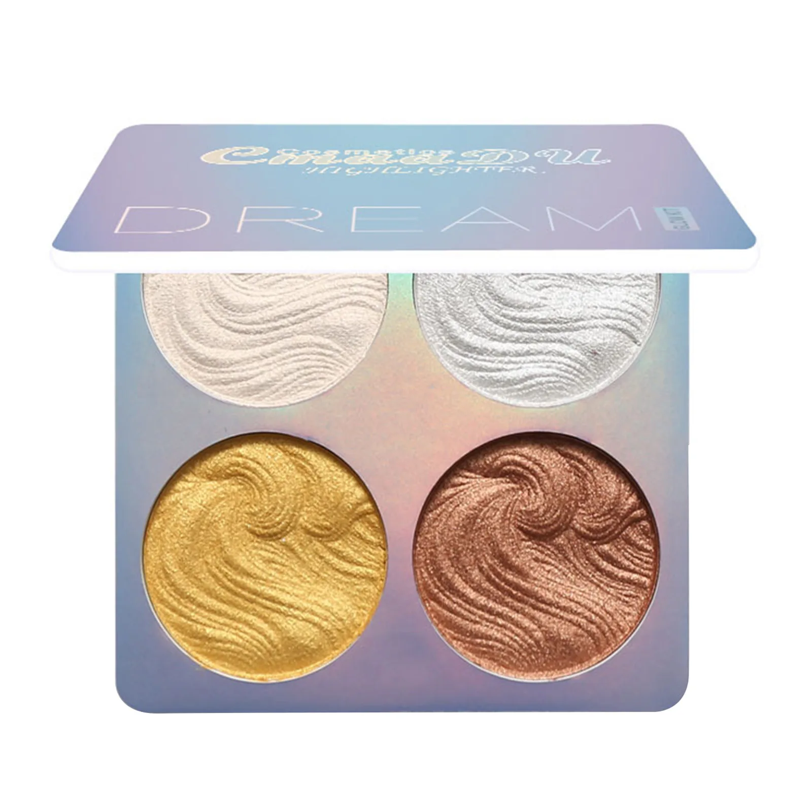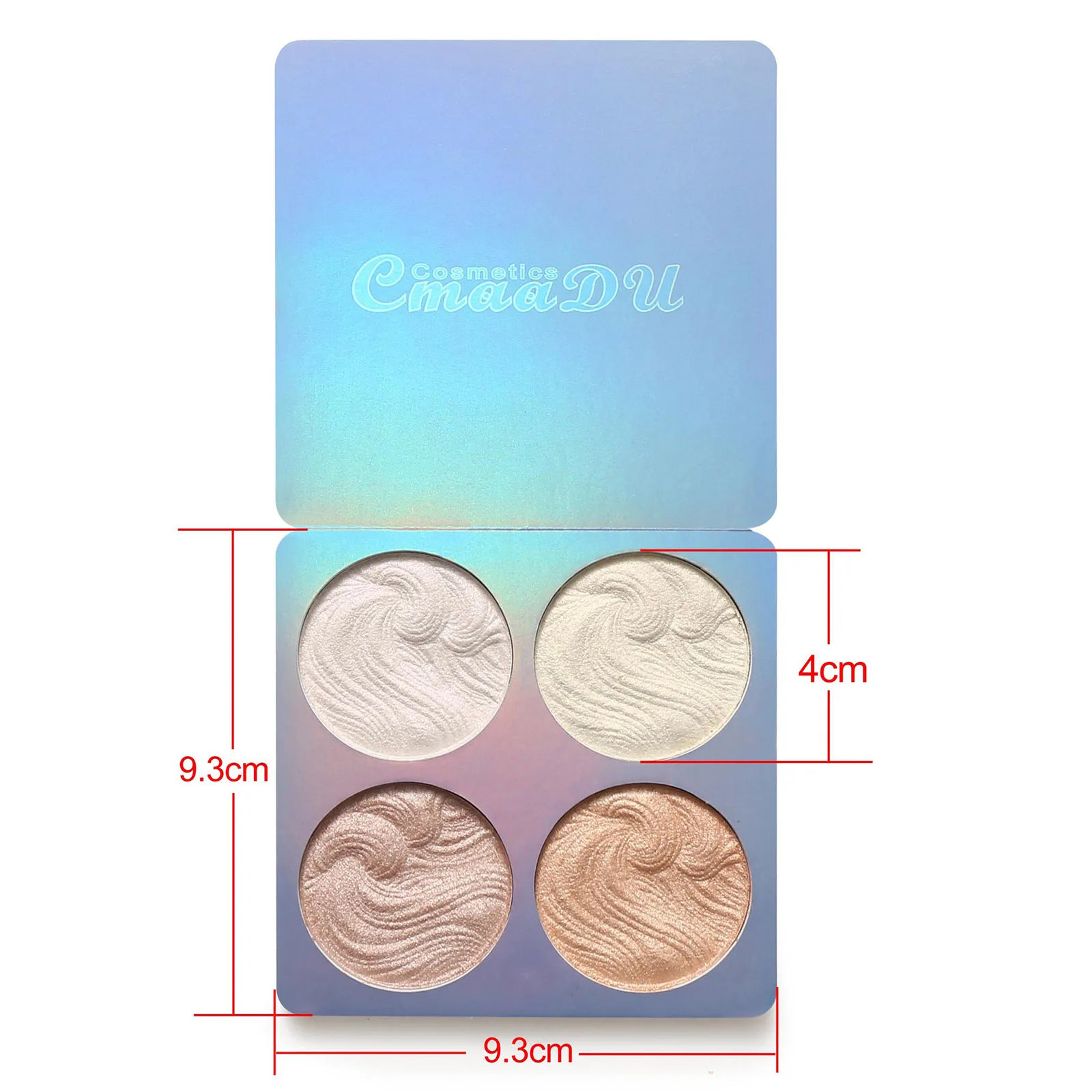 Новинка 2021, 4 в 1, мерцающая пудра-хайлайтер, палитра-осветлитель, пудра, палитра, хайлайтер, запеченный водонепроницаемый стойкий макияж