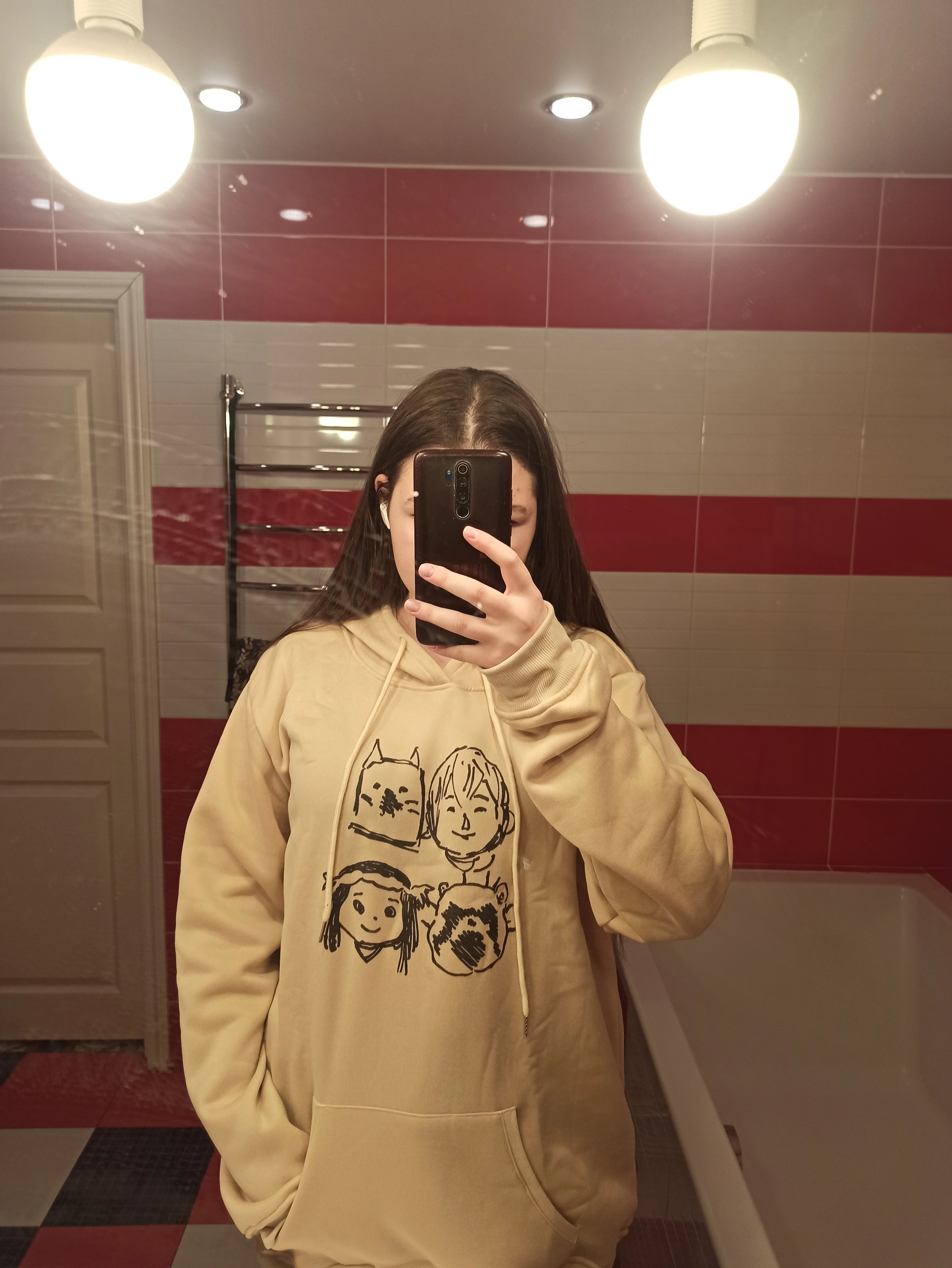 Здравствуйте! Толстовка прекрасная! спасибо большое продавцу. я думала что будет очень маленькая толстовка, но она даже больше чем я хотела, но очень удобно. тепло, комфортно. ткань нежная. хоть я думала что цвет будет ярче, но качество прощает абсолютно всё. рисунок четкий.