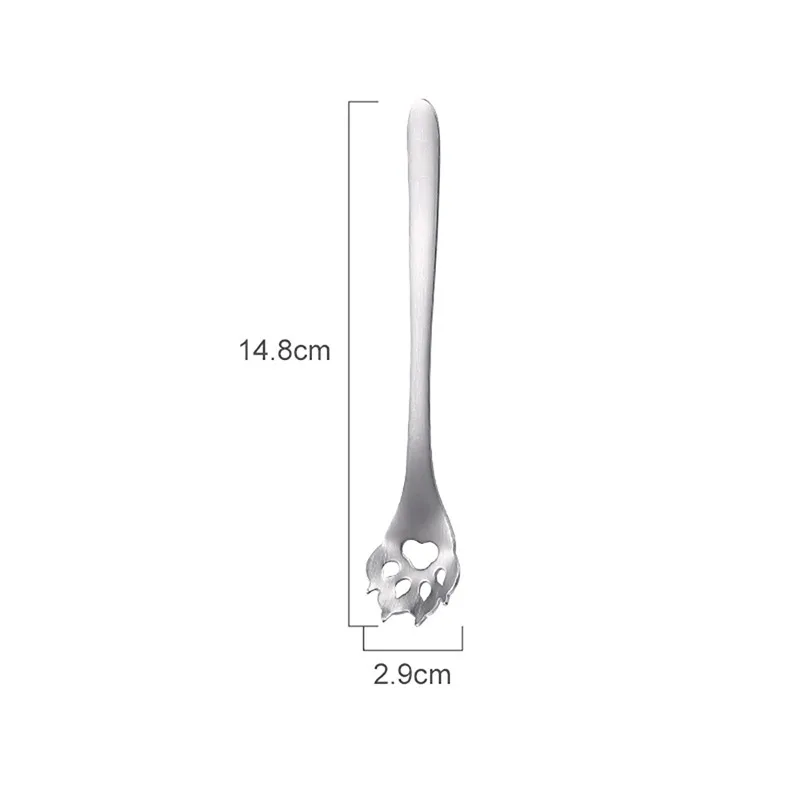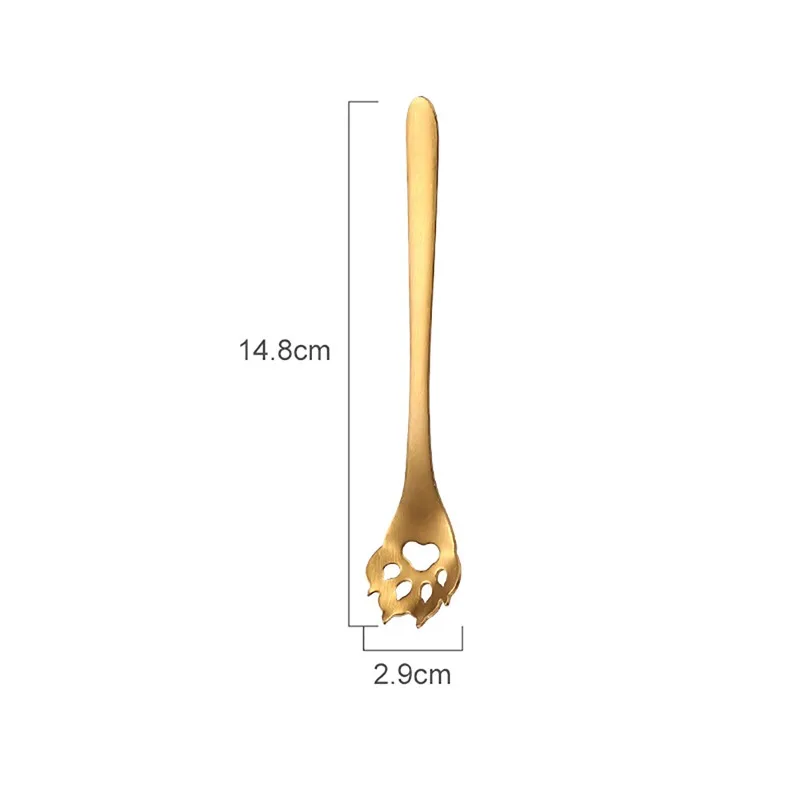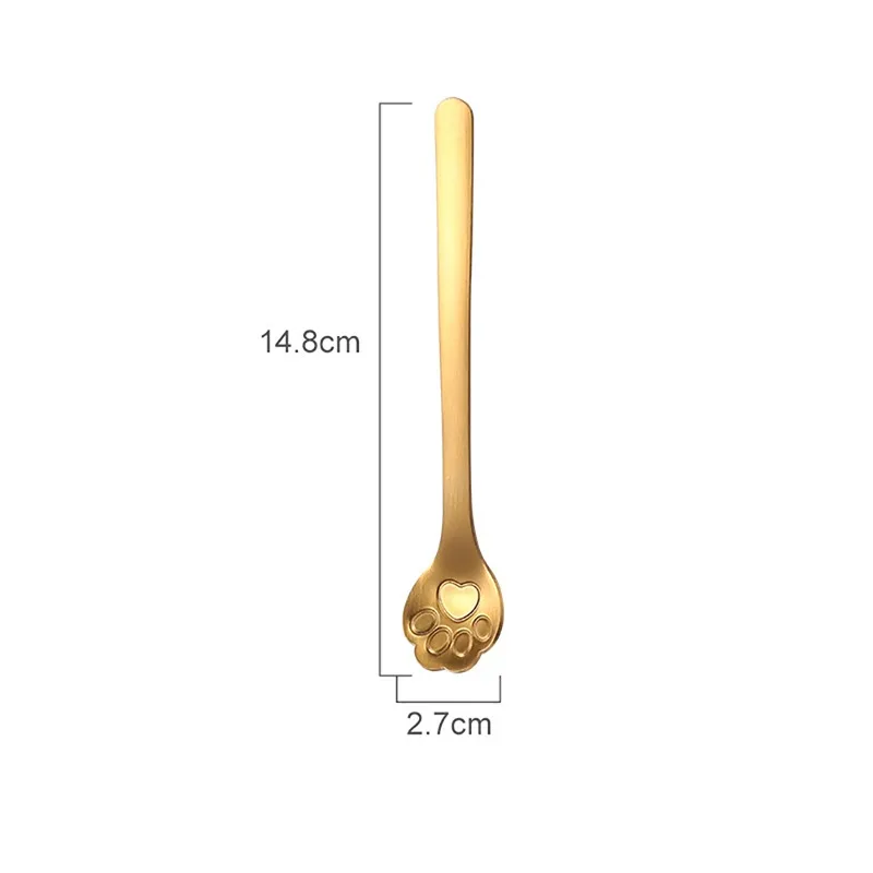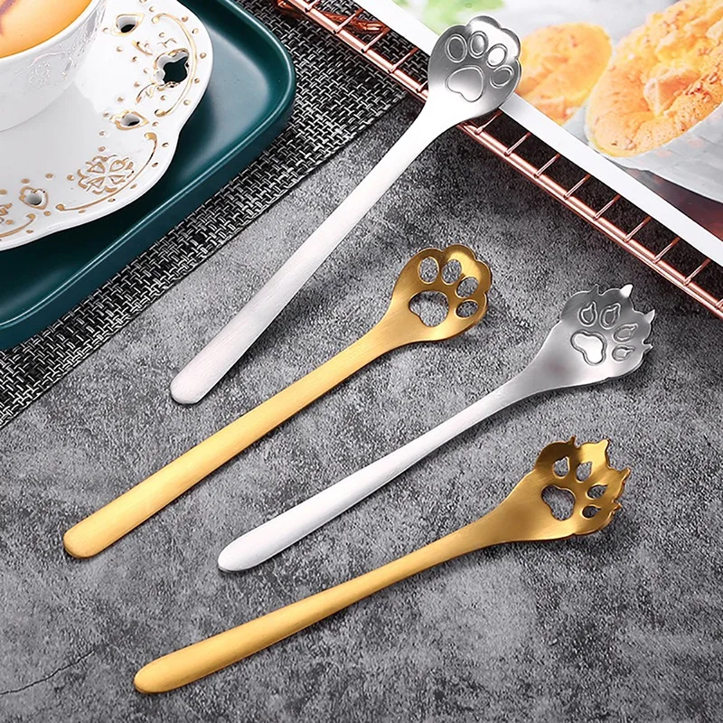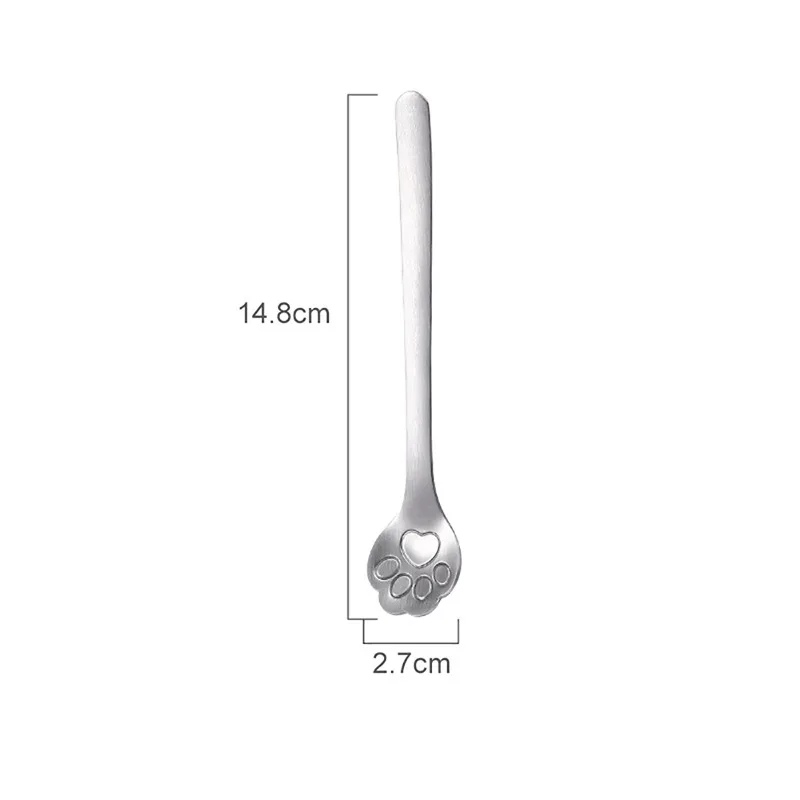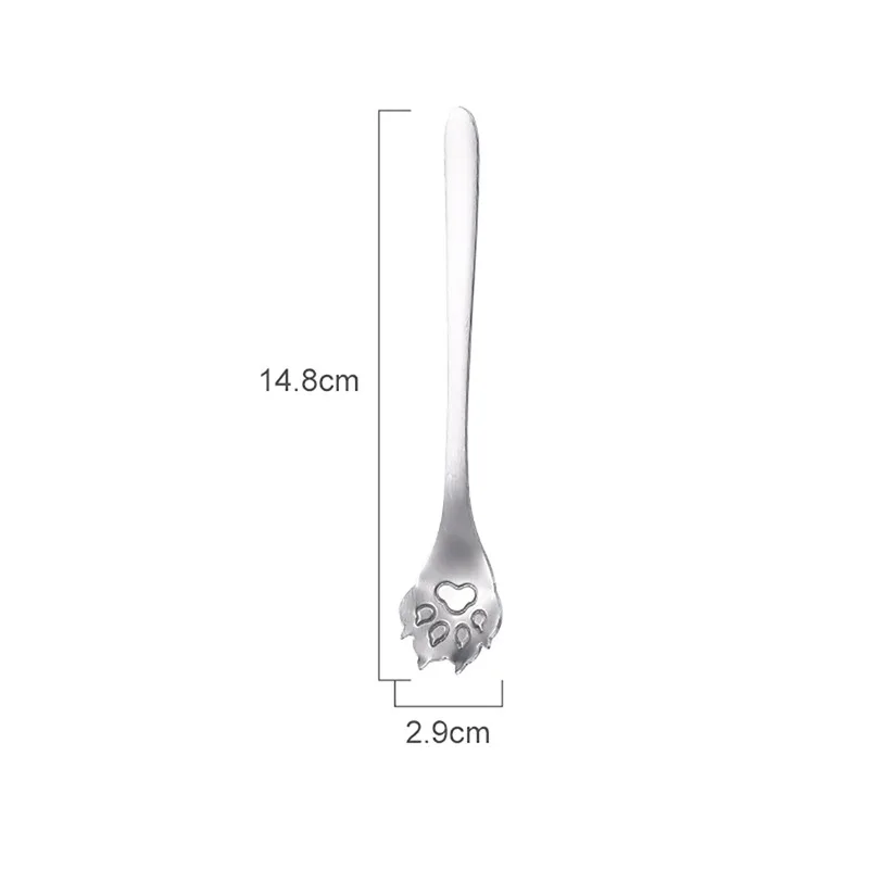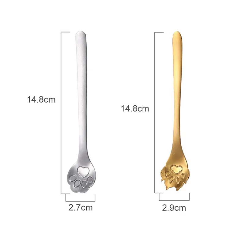 Характеристики:Материал: 304 материалПроцесс: полировка щеткойРазмеры: 14,8*2,9 см (собачья лапка), 14,8*2,7 см (в виде кошачьей лапки)Цвет: серебристый/золотистыйПосылка включает в себя: 1 * кофейная ложка