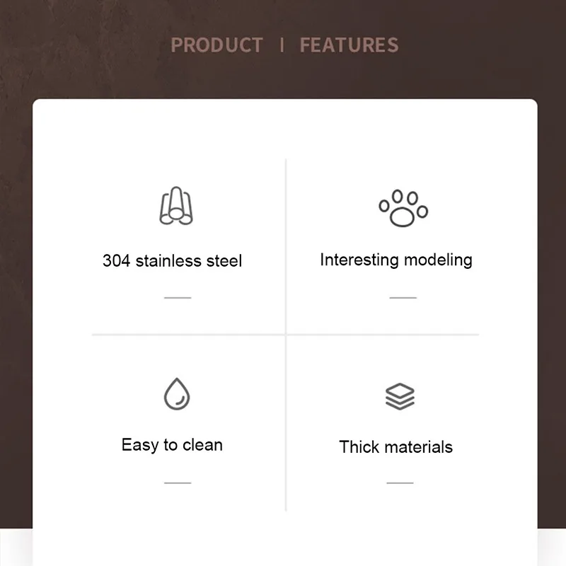 Описание:1. Милый рисунок кошки/собаки с когтями, наслаждайтесь детским удовольствием.2. Высококачественный материал из нержавеющей стали, высокая термостойкость и хорошая прочность.3. Уникальная форма продукта, красивая и практичная, прочная, не выцветает.