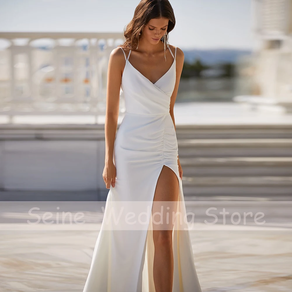 Свадебные платья на бретелях-спагетти с V-образным вырезом и разрезом сбоку