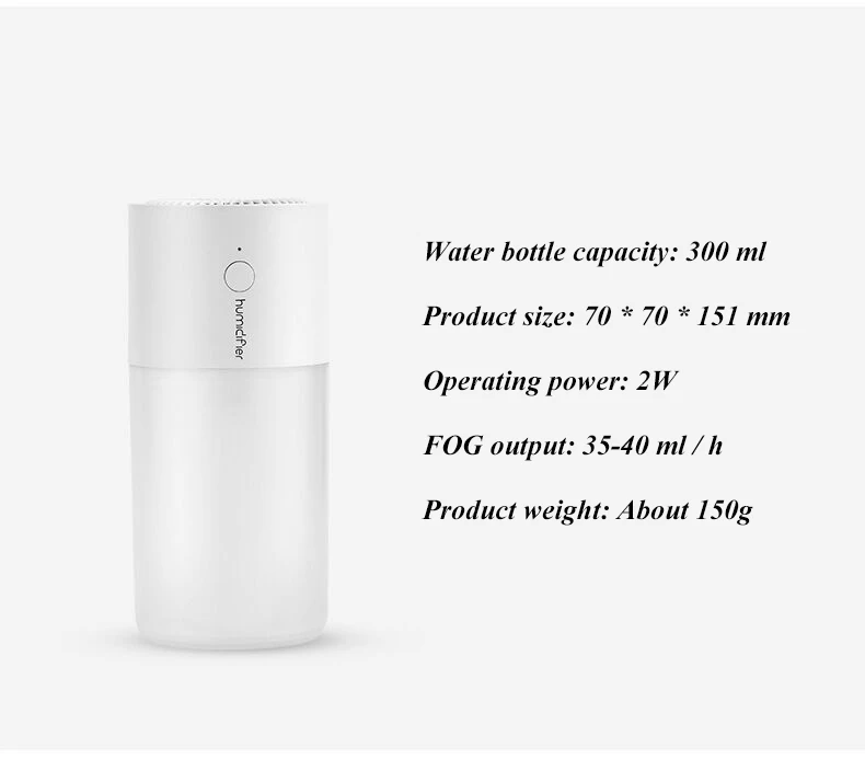 Мини-увлажнитель воздуха, 300 мл, USB, светодиодный Ной подсветкой