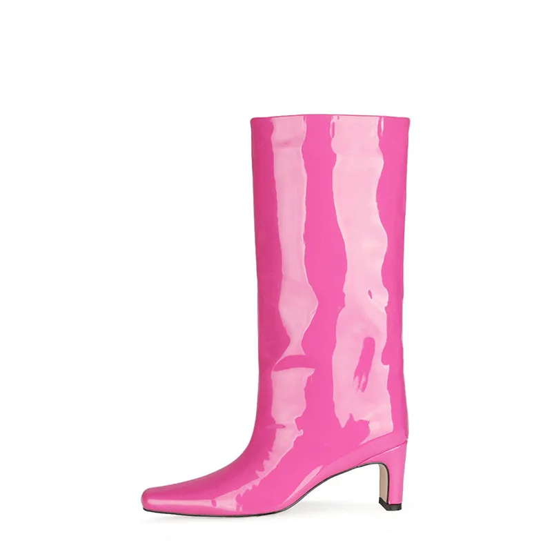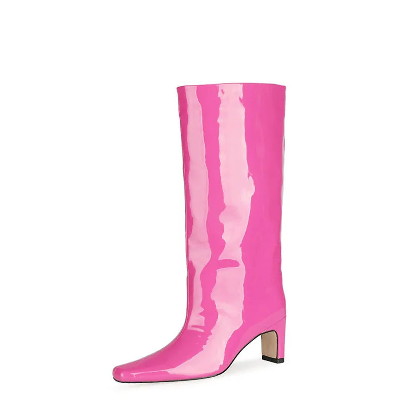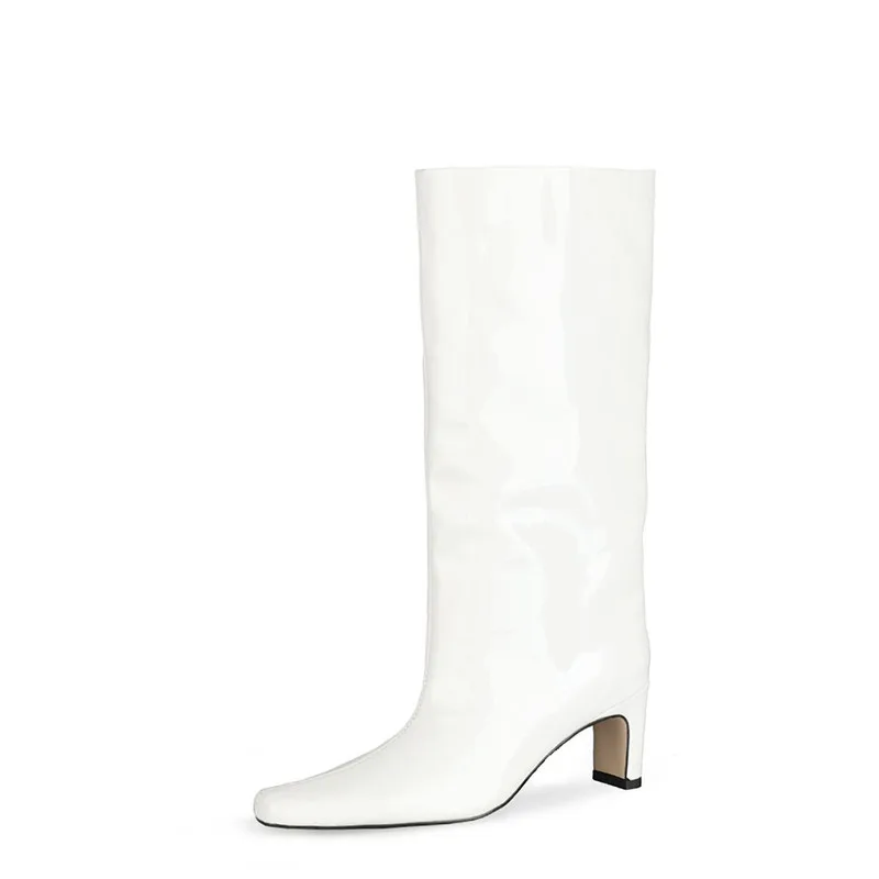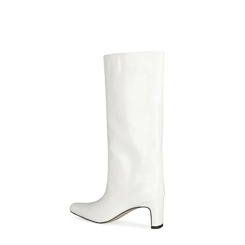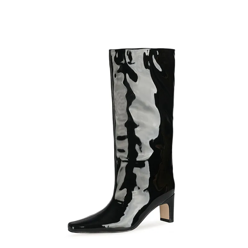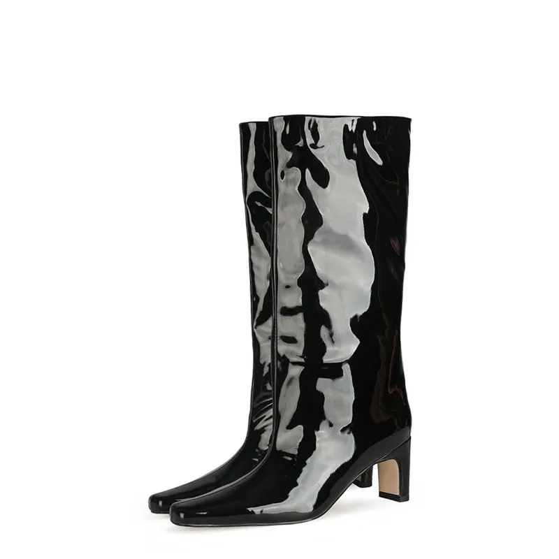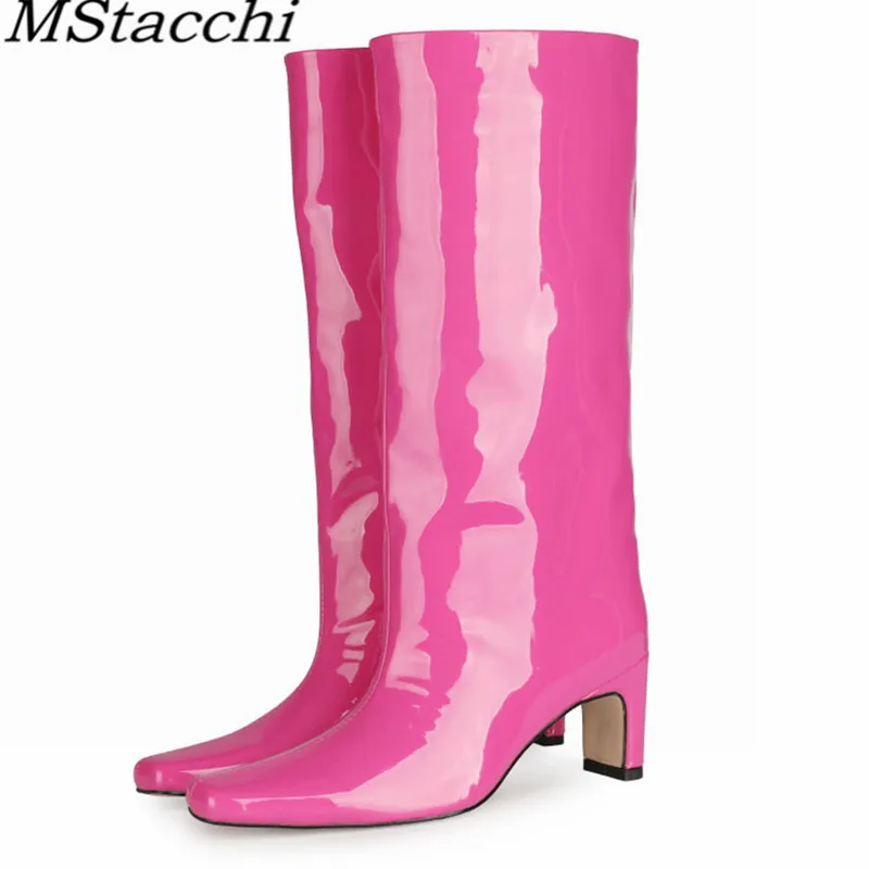 Женские сапоги MStacchi до колена на квадратном каблуке, плюшевые однотонные вечерние женские сапоги без шнуровки, зимняя женская кожаная обувь на низком каблуке