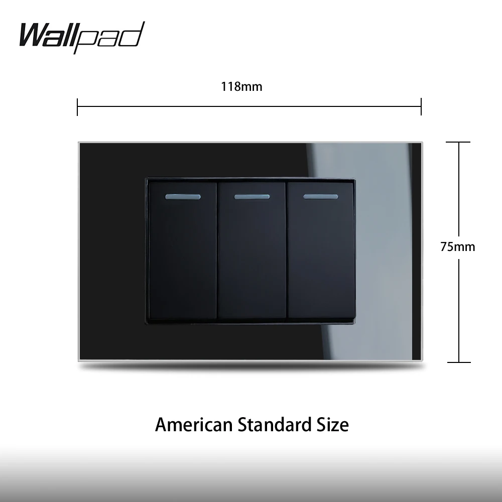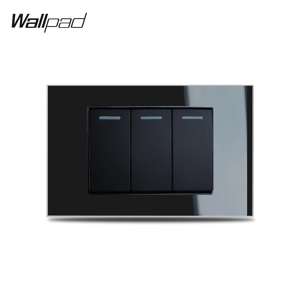 US 3 Gang светильник On Off прерыватель Wallpad L3 черная стеклянная панель 118*75 мм кнопочный переключатель 6 м для AU IT IL