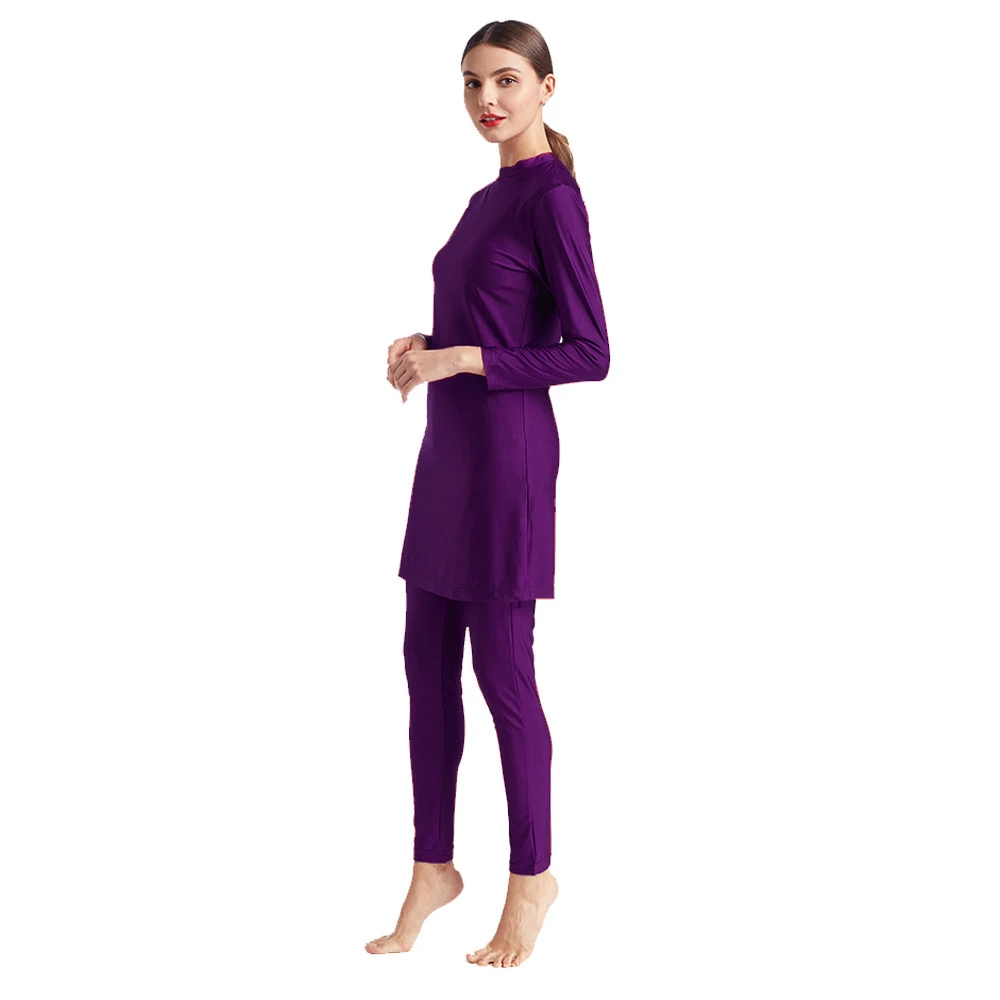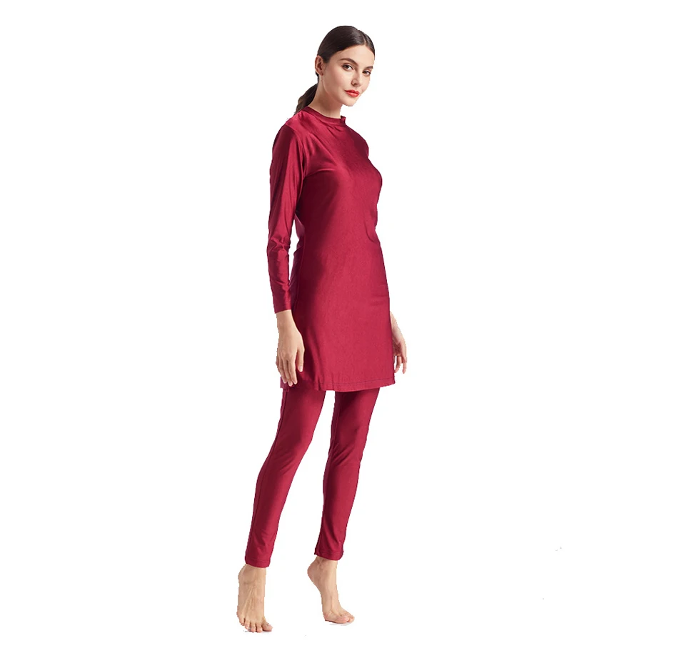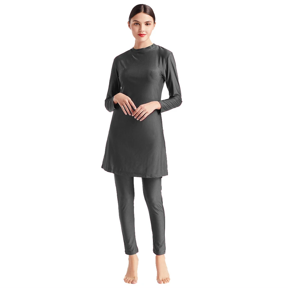 Сдержанный купальник, облегающий купальник из трех частей, Женский консервативный однотонный купальник большого размера для женщин, Мусульманский купальник Burkini с длинным рукавом