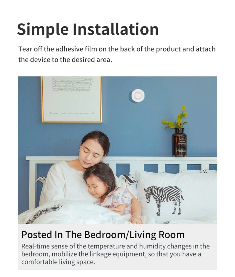 Через приложение датчик температуры и влажности можно подключить к другим умным устройствам в доме, чтобы улучшить холод в помещении, тепло, сухость и влажность, что позволит вам иметь более комфортное жизненное пространство
