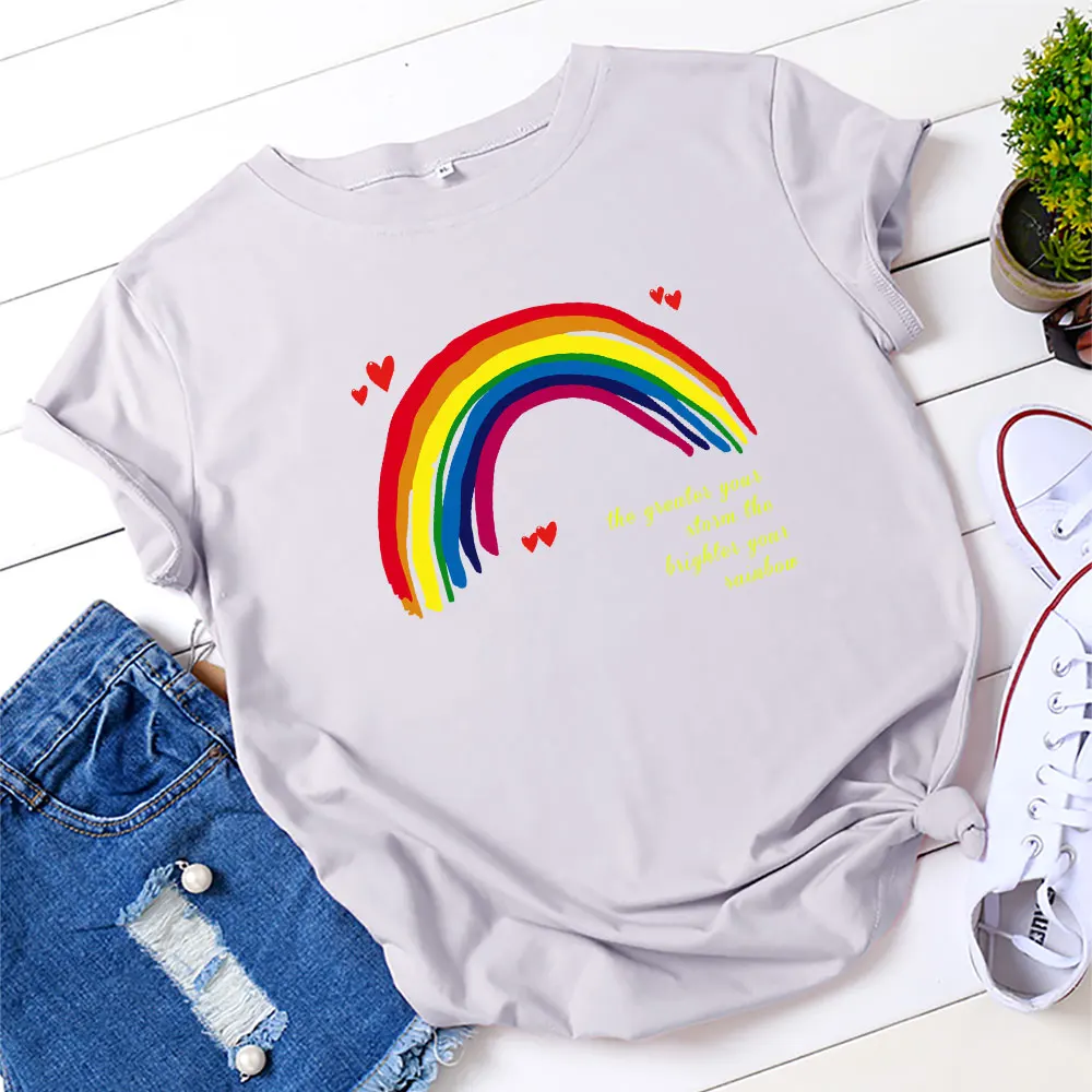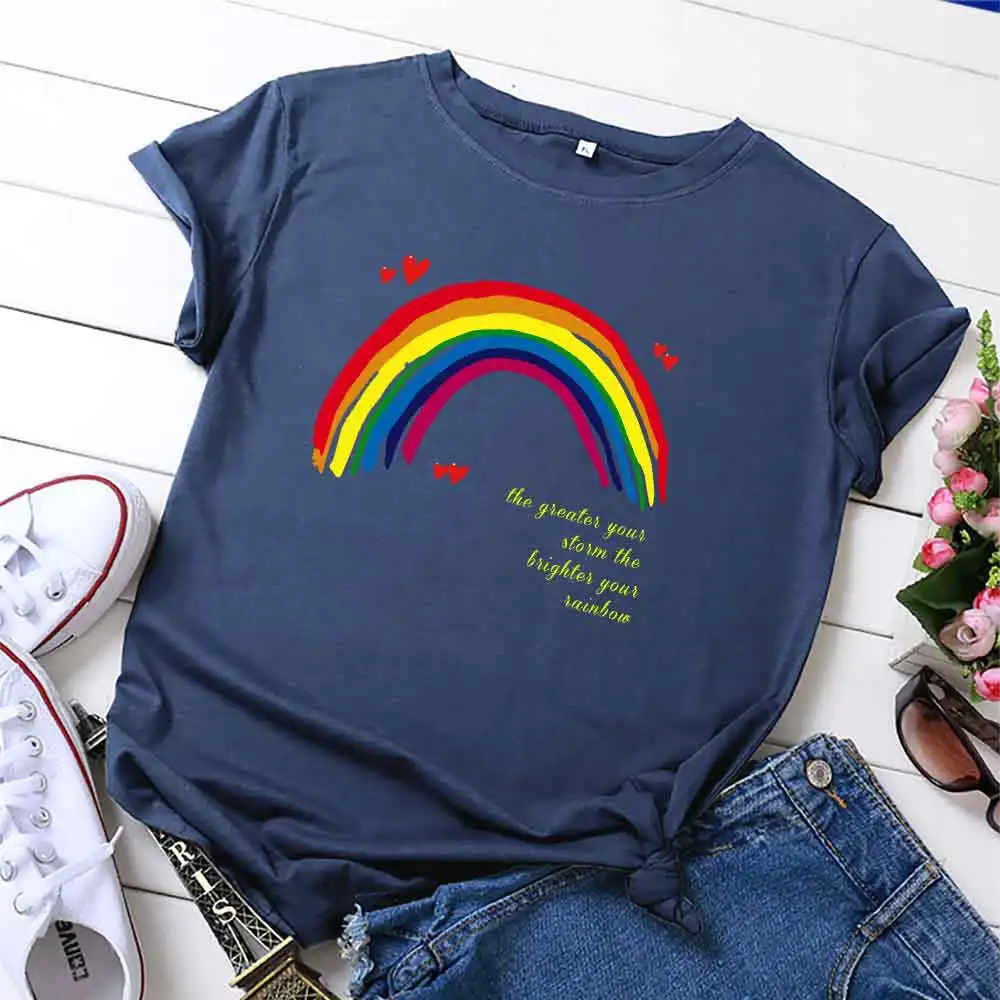 Женская футболка размером XL, новая женская футболка с радужным принтом, женская рубашка из 100% хлопка, футболка с круглым вырезом и коротким рукавом, летняя футболка