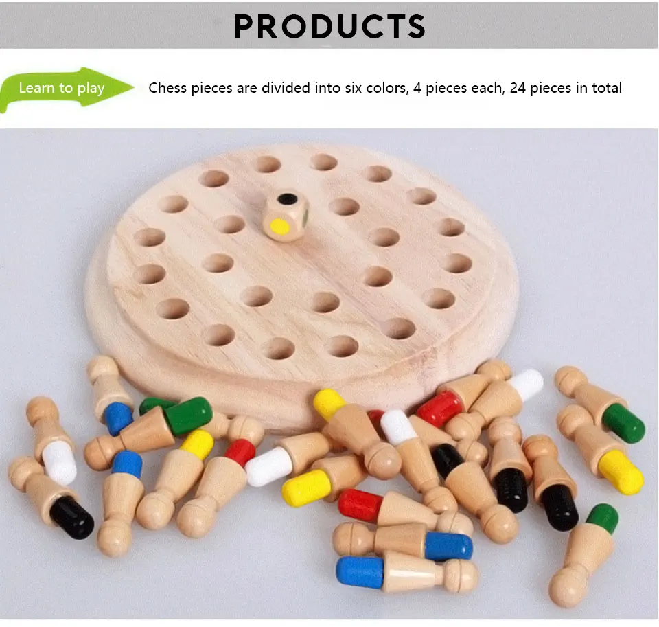Настольные шахматы Монтессори для детей, развивающие игрушки для детей, головоломка для мозга, деревянные игрушки, игра для запоминания, шахматная игра 3 5 8 лет