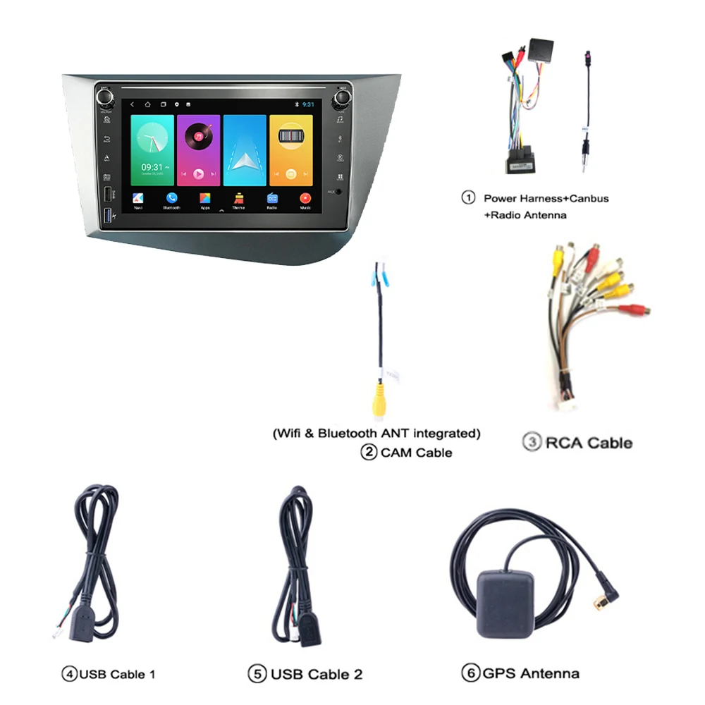 Автомобильное радио Seat Leon на Android-1 шт. кабель питания-1 шт. Антенна GPS-1 шт. вход для камеры-1 шт. вход и выход RCA-2 шт. usb-кабель-1 шт. руководство пользователя-1 шт.