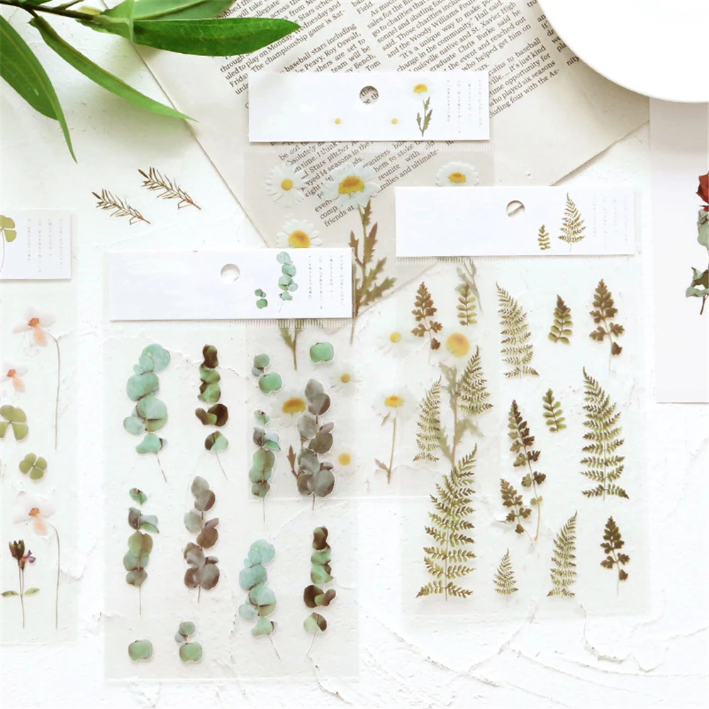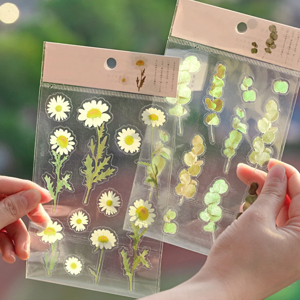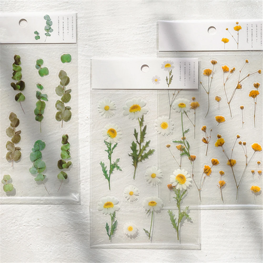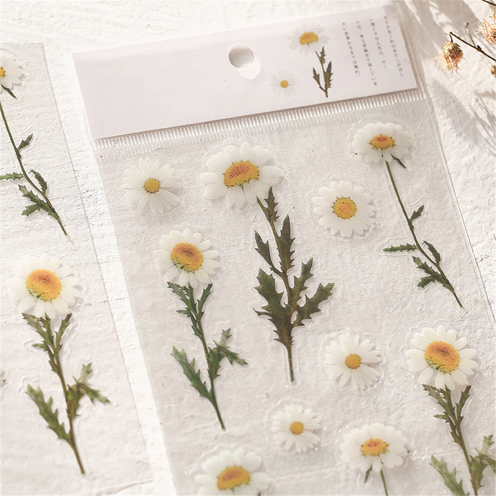 Прозрачные наклейки с маргаритками, стикеры 6 стилей для дневника, скрапбукинга, фотоальбома, ручной аккаунт, декор с листьями и растениями